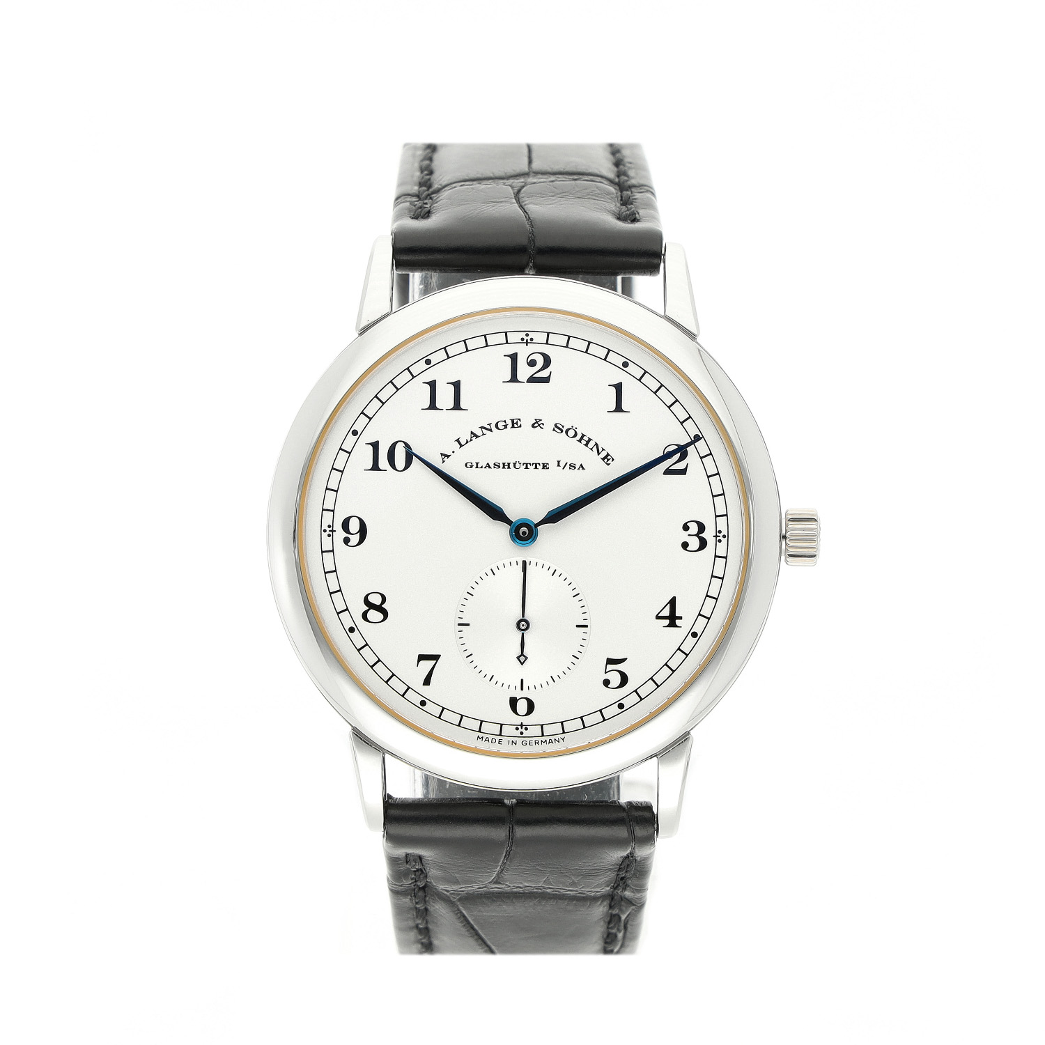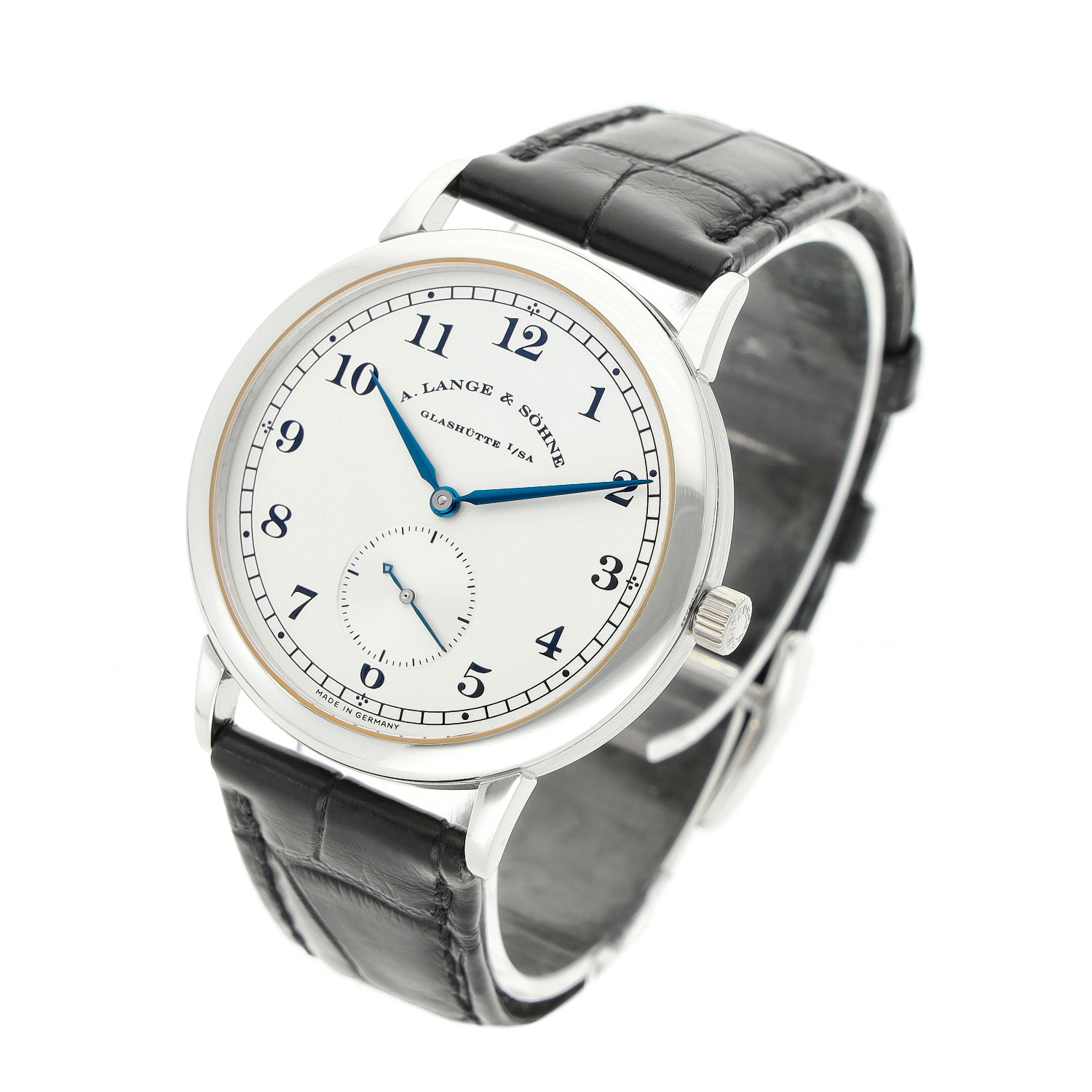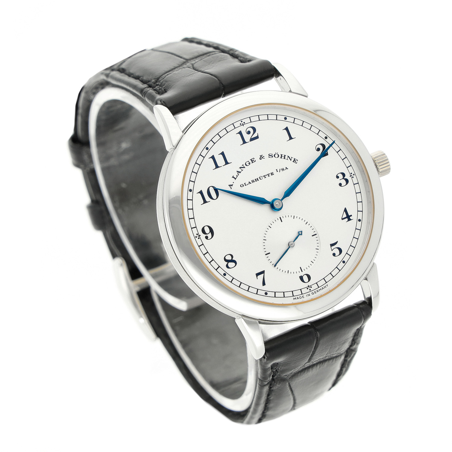 A. Lange Söhne mit einem 36mm Gehäuse in Platin und Dornschließe. Die Herren A. Lange Söhne Uhr befindet sich in einem sehr guten Zustand.