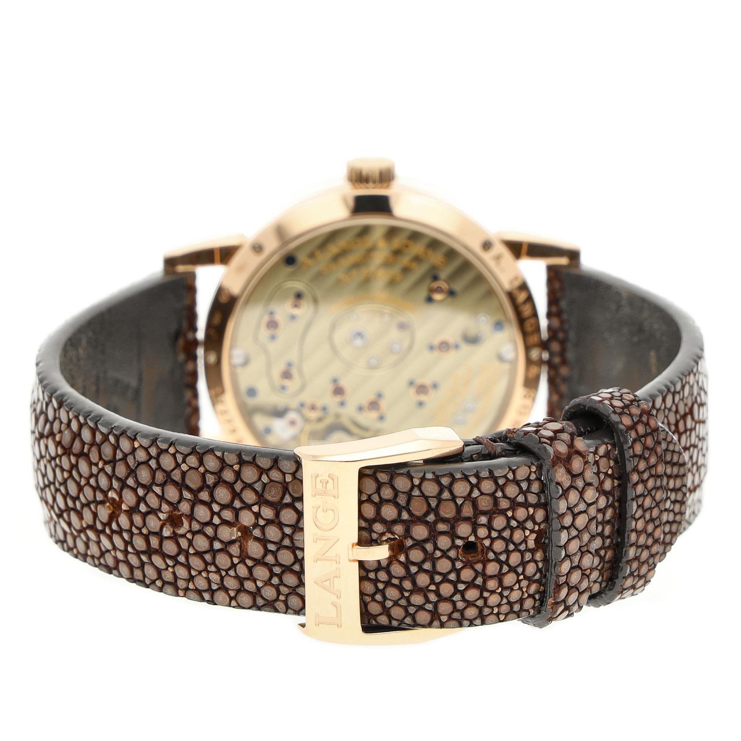 A. Lange Söhne Lange 1 aus dem Jahre 2009 mit einem 36mm Gehäuse in Roségold und Dornschließe. Die Herren A. Lange Söhne Uhr befindet sich in einem sehr guten Zustand.
