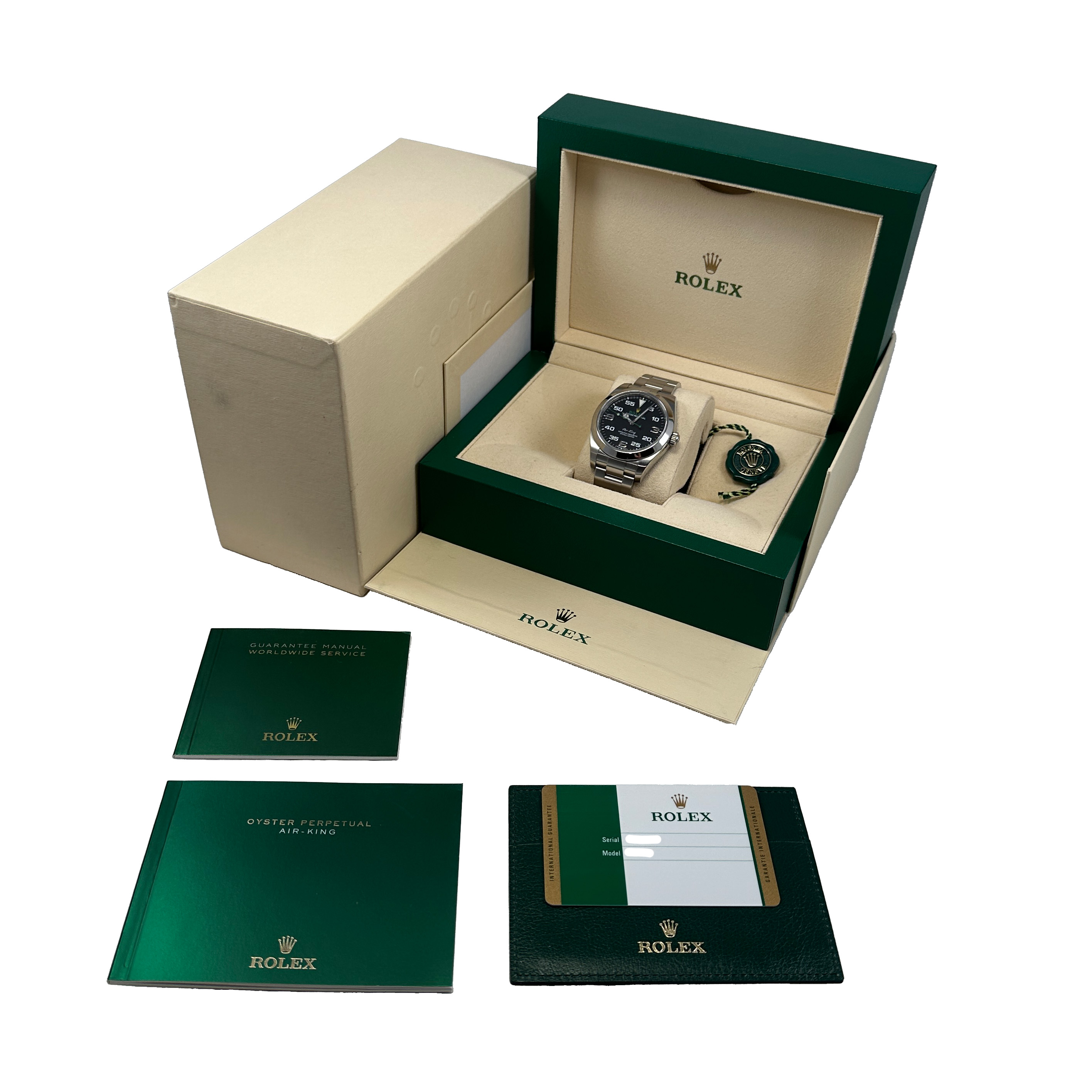 Rolex Air King aus dem Jahre 2019 mit einem 40mm Gehäuse in Edelstahl und Faltschließe. Die Herren Rolex Uhr befindet sich in einem sehr guten Zustand.