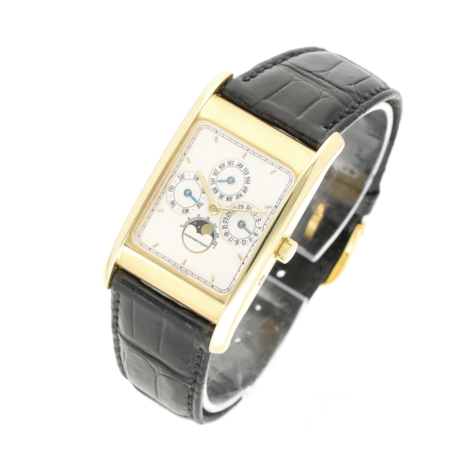 Audemars Piguet Quantieme Perpetual Calendar aus dem Jahre 1992 mit einem 27 x 40mm Gehäuse in Gelbgold und Dornschließe. Die Herren Audemars Piguet Uhr befindet sich in einem gutem Zustand.