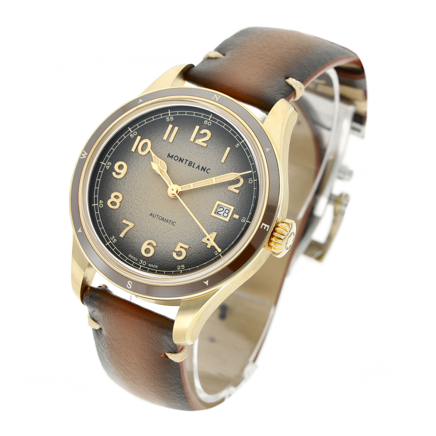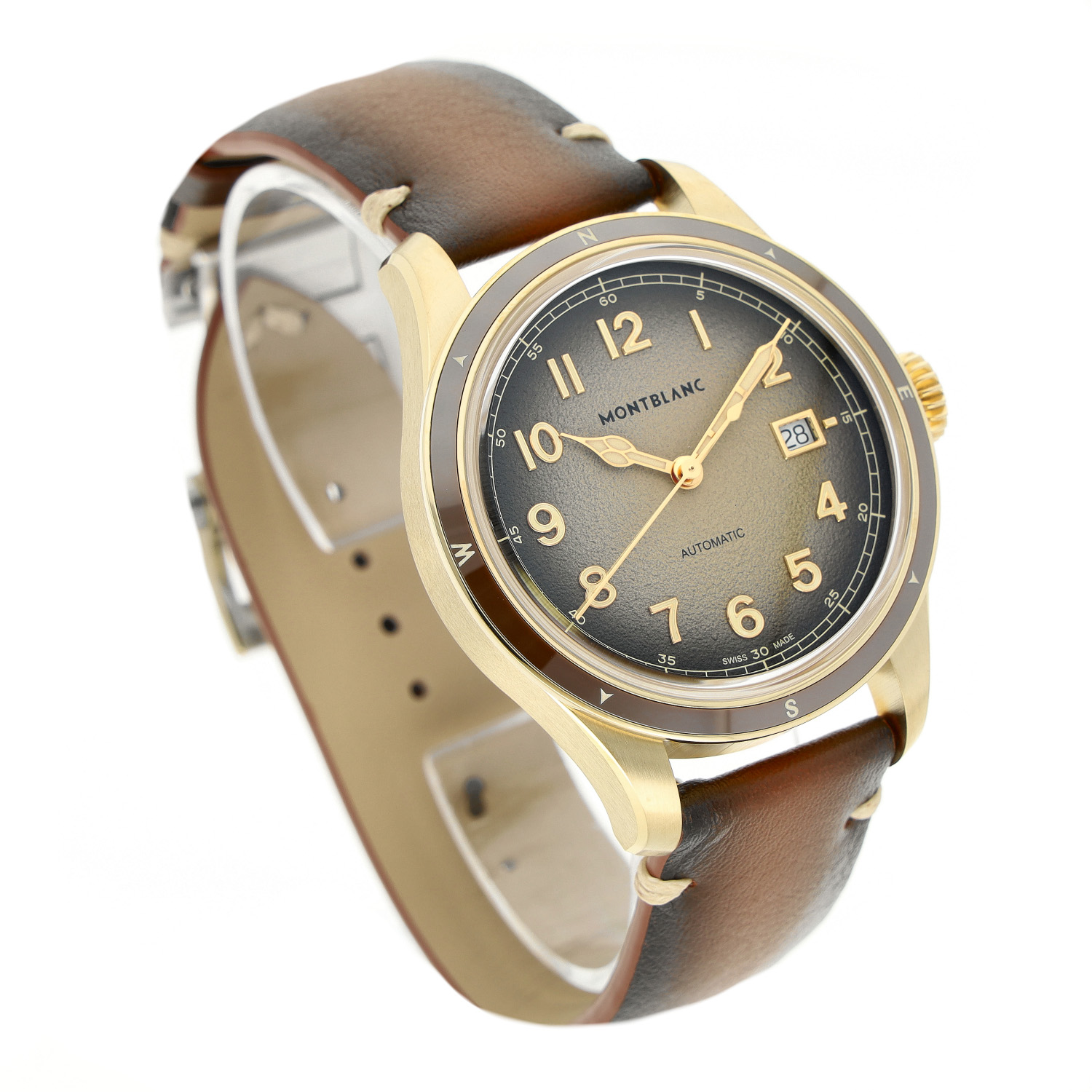 Montblanc mit einem 41mm Gehäuse in Bronze und Faltschließe. Die Herren Montblanc Uhr befindet sich in einem ungetragenem Zustand.