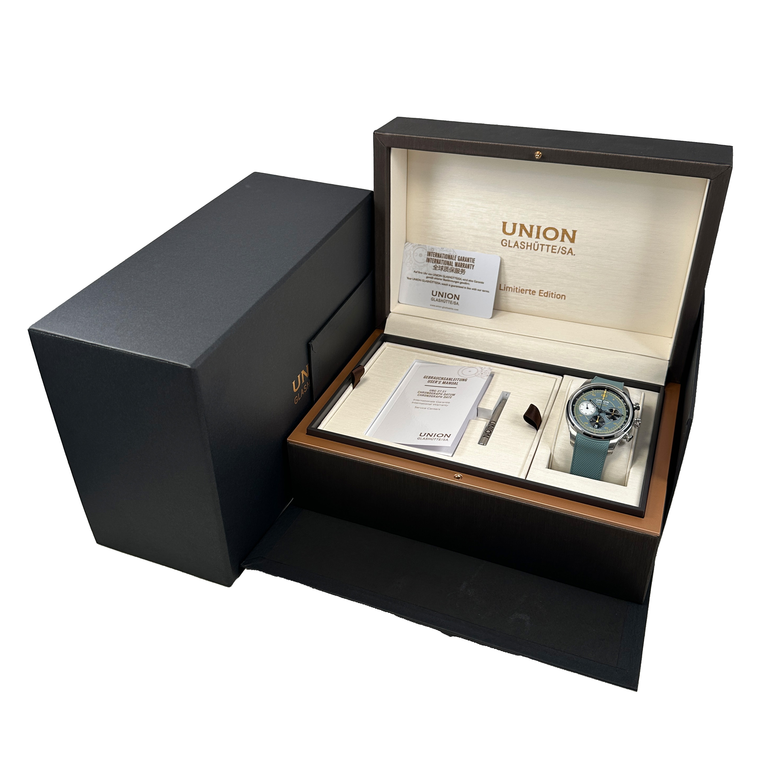 Union Glashütte Fliegeruhr Automatic aus dem Jahre 2025 mit einem 44mm Gehäuse in Edelstahl und Dornschließe. Die Herren Union Glashütte Uhr befindet sich in einem sehr guten Zustand.
