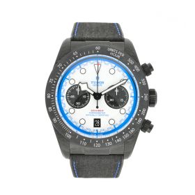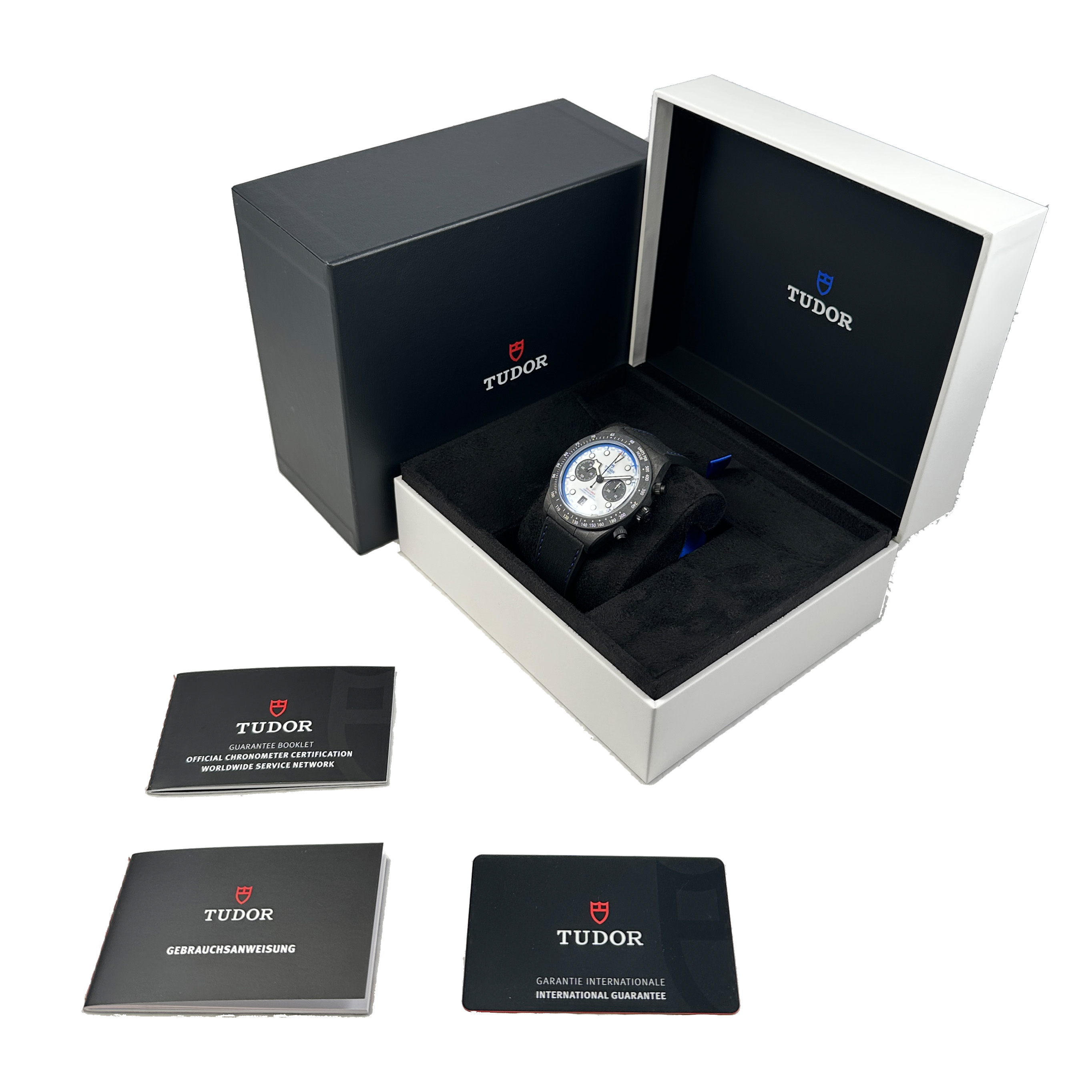Tudor Black Bay aus dem Jahre 2025 mit einem 42mm Gehäuse in Carbon und Dornschließe. Die Herren Tudor Uhr befindet sich in einem ungetragenem Zustand.