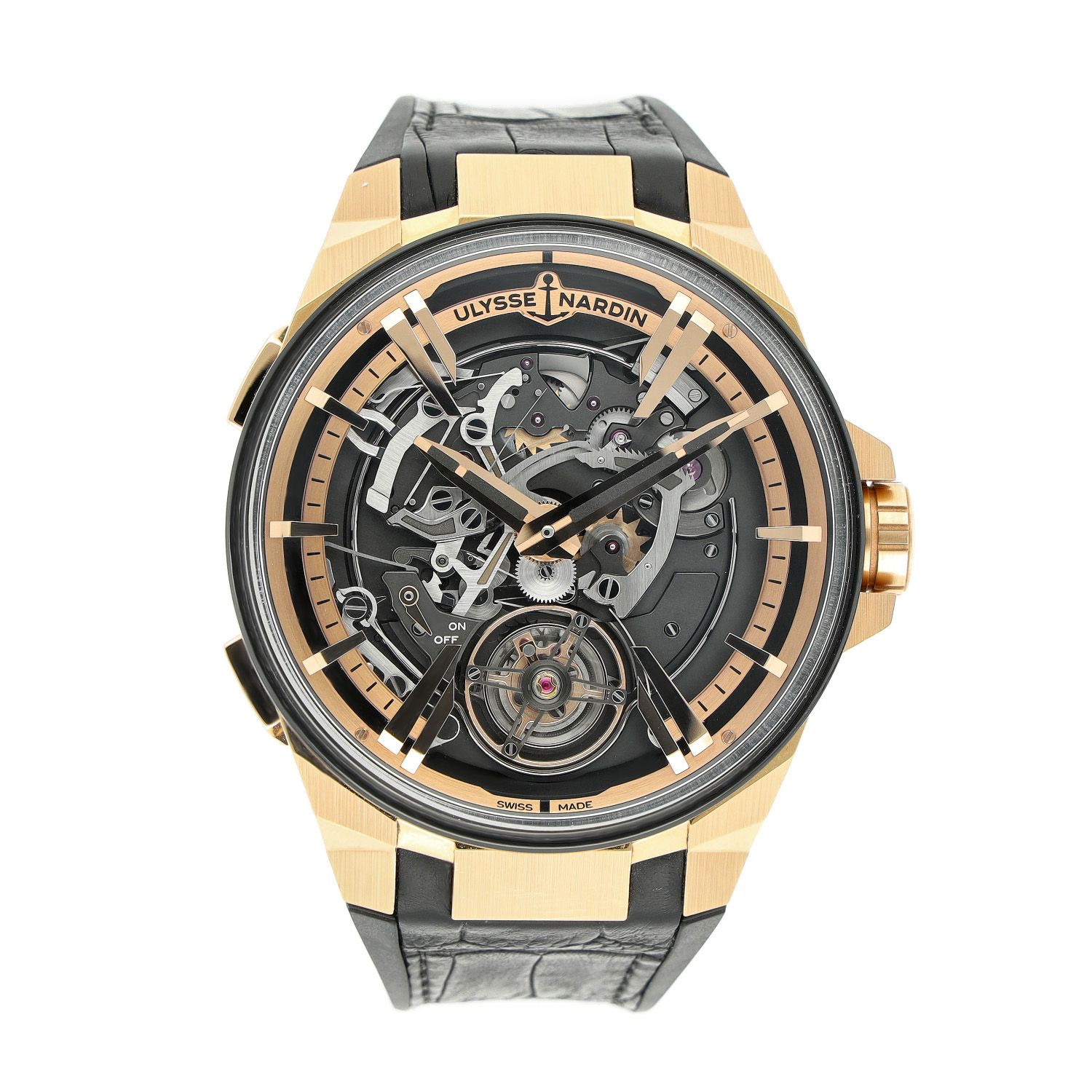 Ulysse Nardin Hourstriker aus dem Jahre 2023 mit einem 45mm Gehäuse in Roségold und Faltschließe. Die Herren Ulysse Nardin Uhr befindet sich in einem sehr guten Zustand.