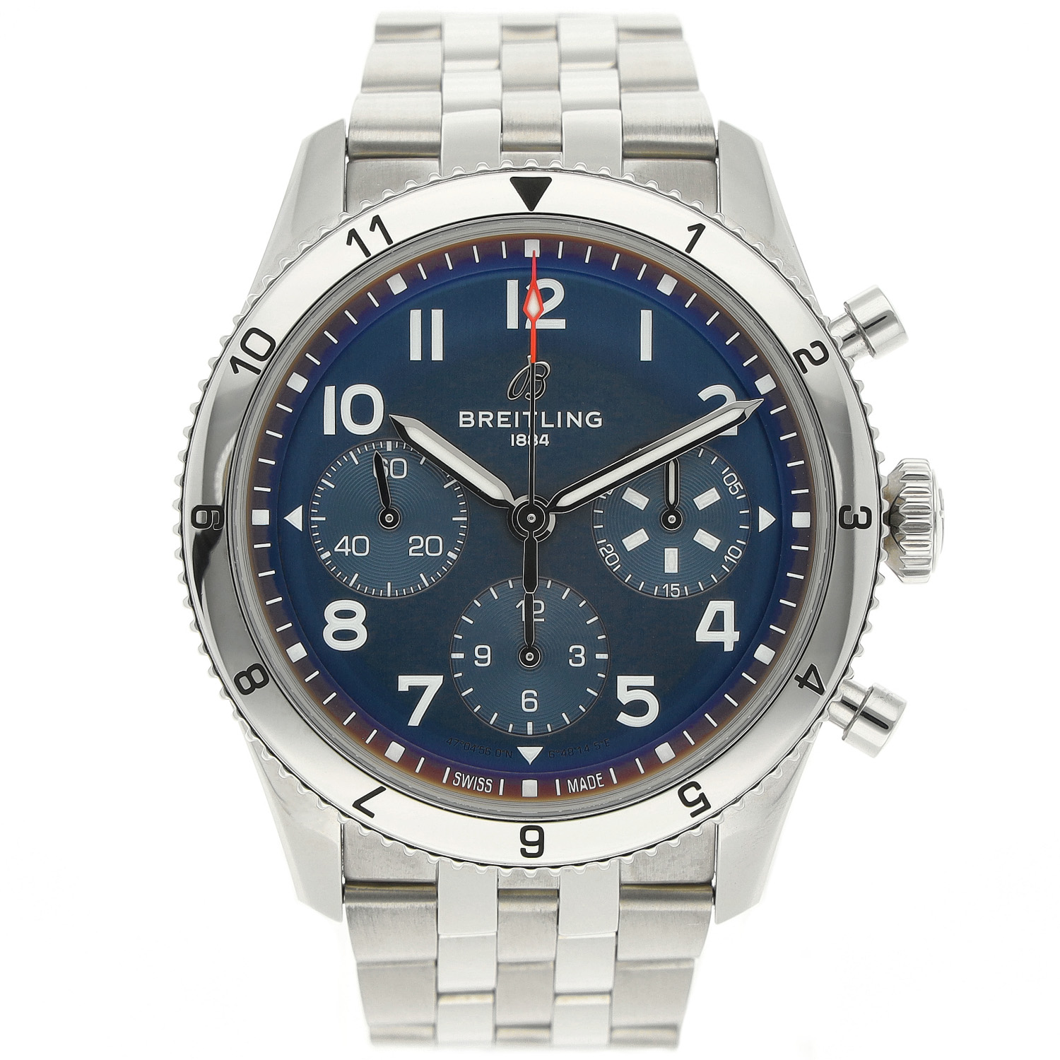 Breitling CLASSIC AVI aus dem Jahre 2024 mit einem 42mm Gehäuse in Edelstahl und Dornschließe. Die Herren Breitling Uhr befindet sich in einem ungetragenem Zustand.