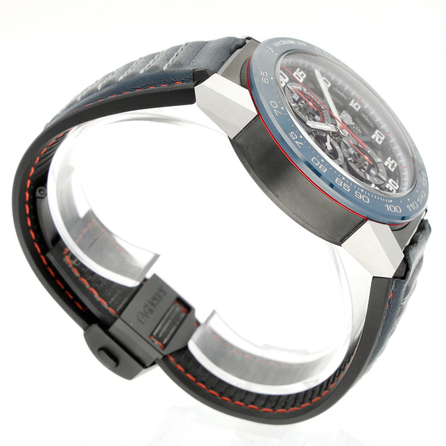 Tag Heuer Carrera aus dem Jahre 2021 mit einem 45mm Gehäuse in Keramik und Faltschließe. Die Herren Tag Heuer Uhr befindet sich in einem sehr guten Zustand.