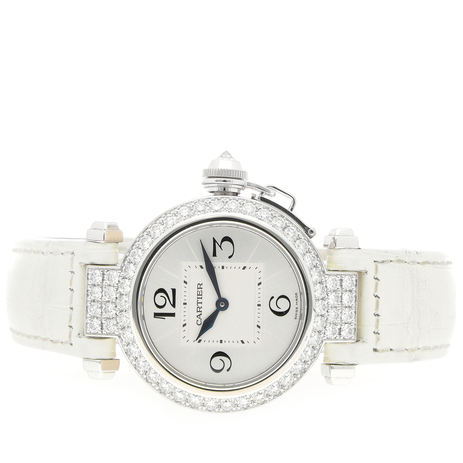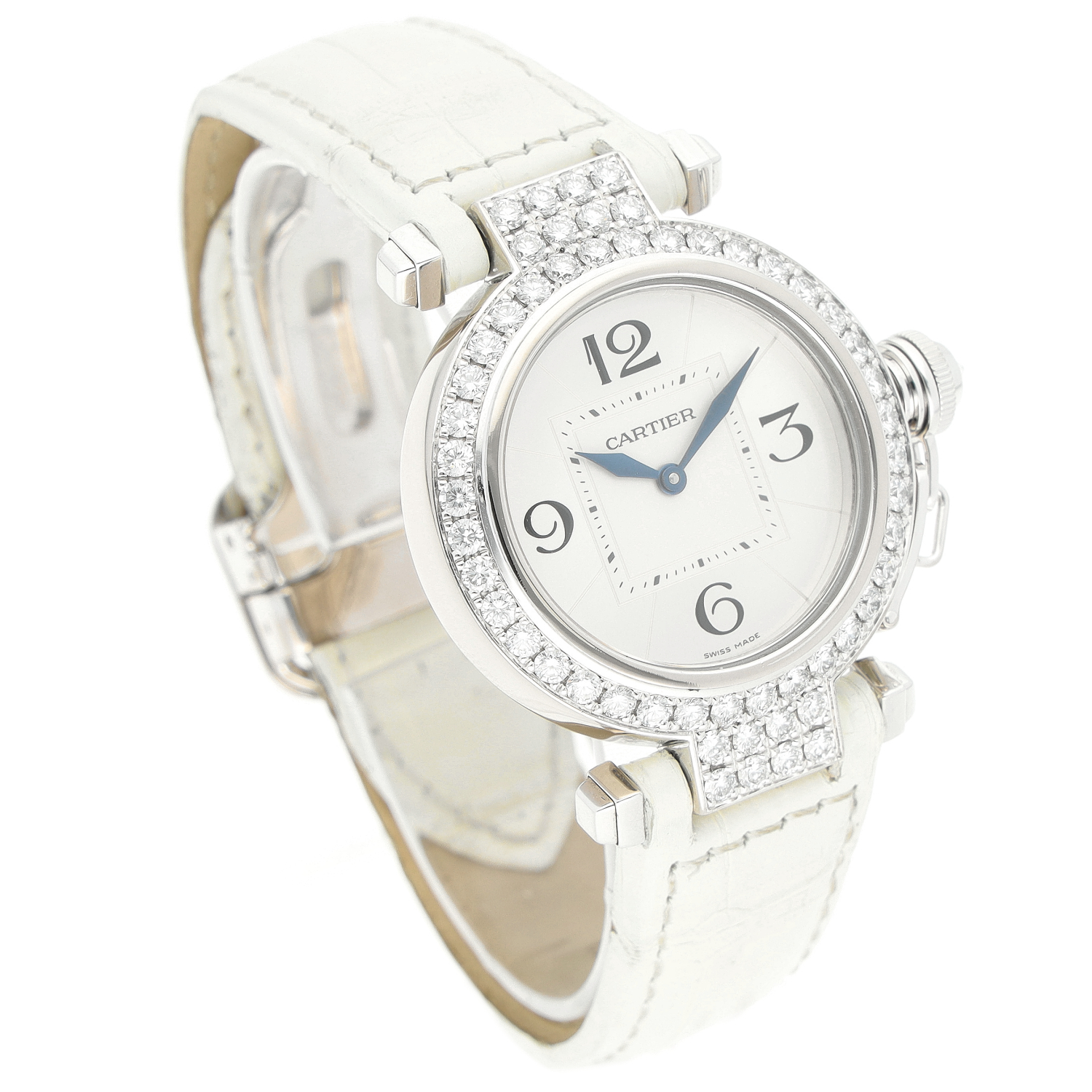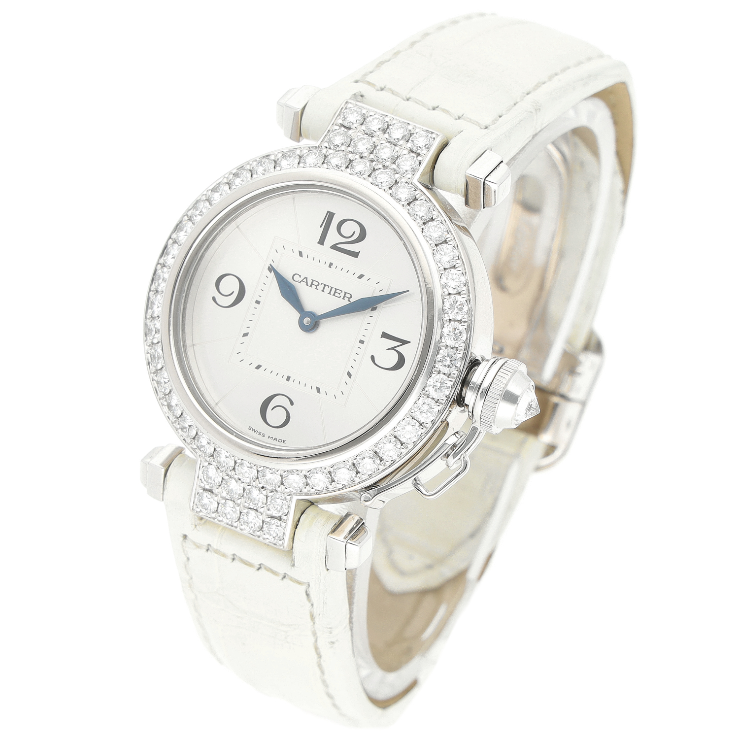 Cartier Pasha aus dem Jahre 2006 mit einem 32mm Gehäuse in Weißgold und Faltschließe. Die Herren Cartier Uhr befindet sich in einem sehr guten Zustand.