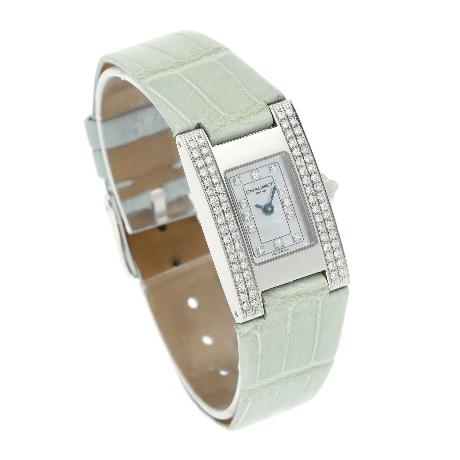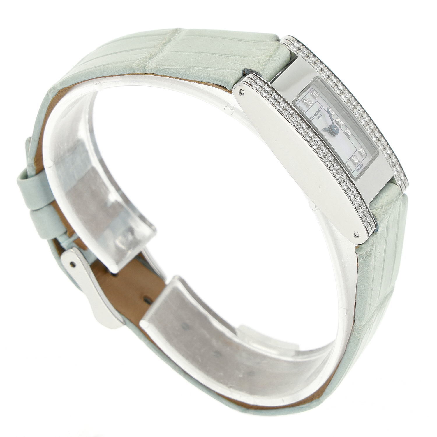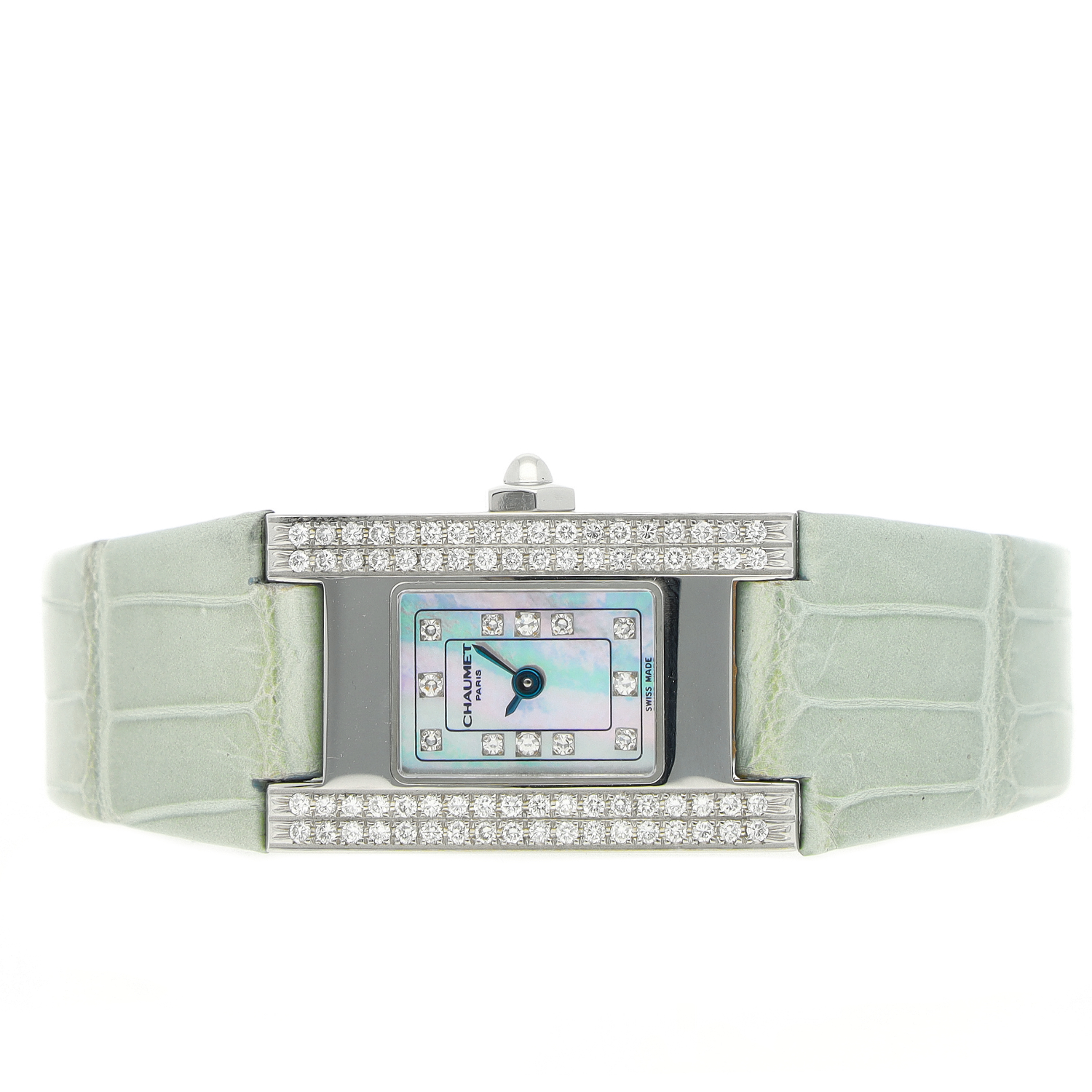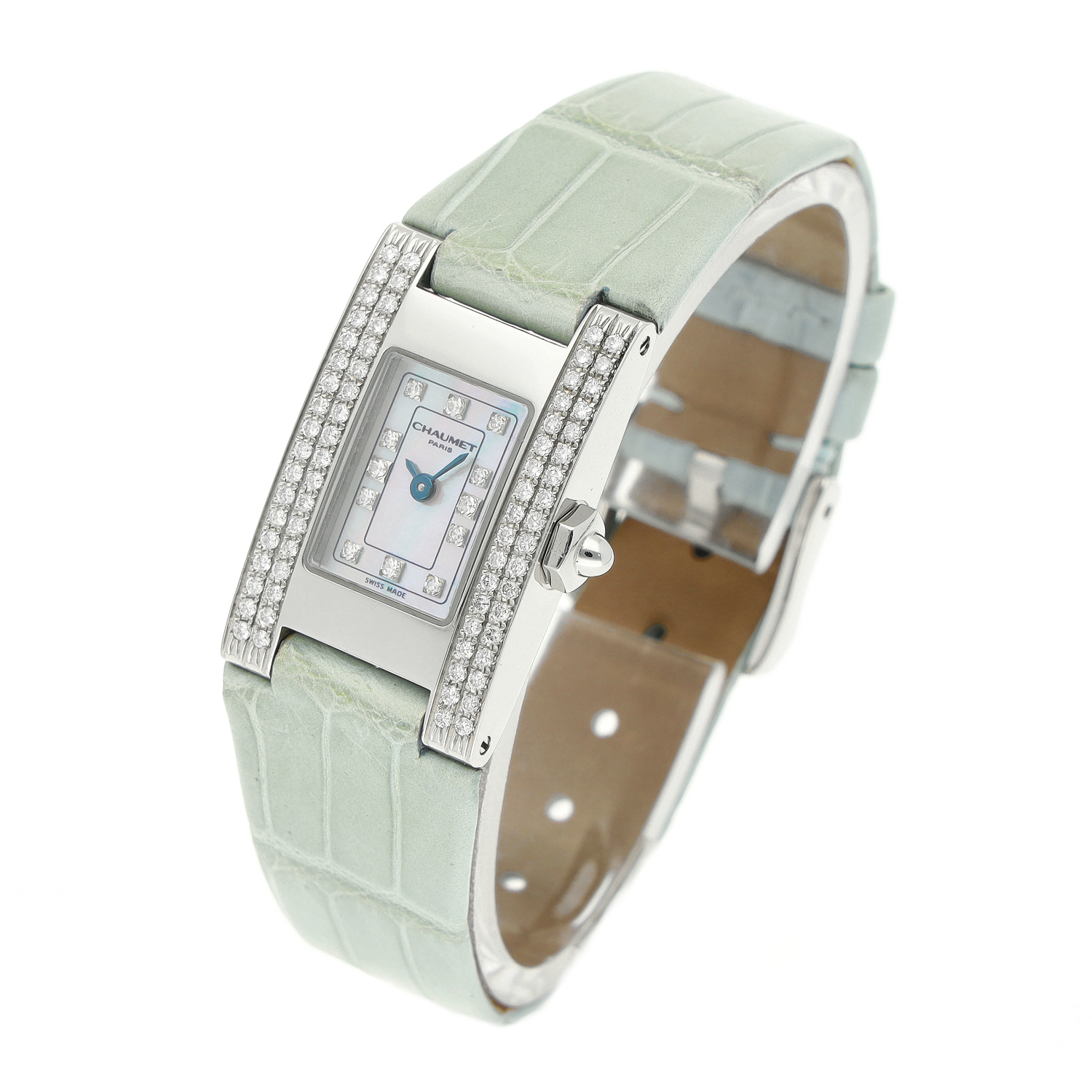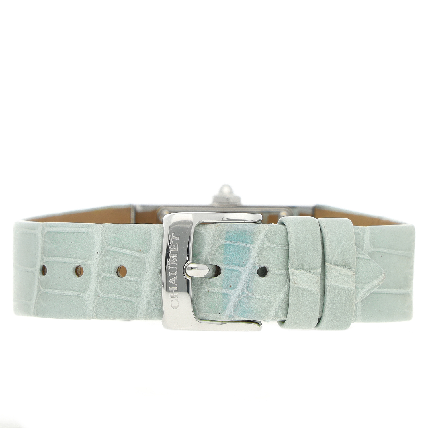 Chaumet Khesis aus dem Jahre 2005 mit einem 19mm Gehäuse in Edelstahl und Dornschließe. Die Damen Chaumet Uhr befindet sich in einem sehr guten Zustand.