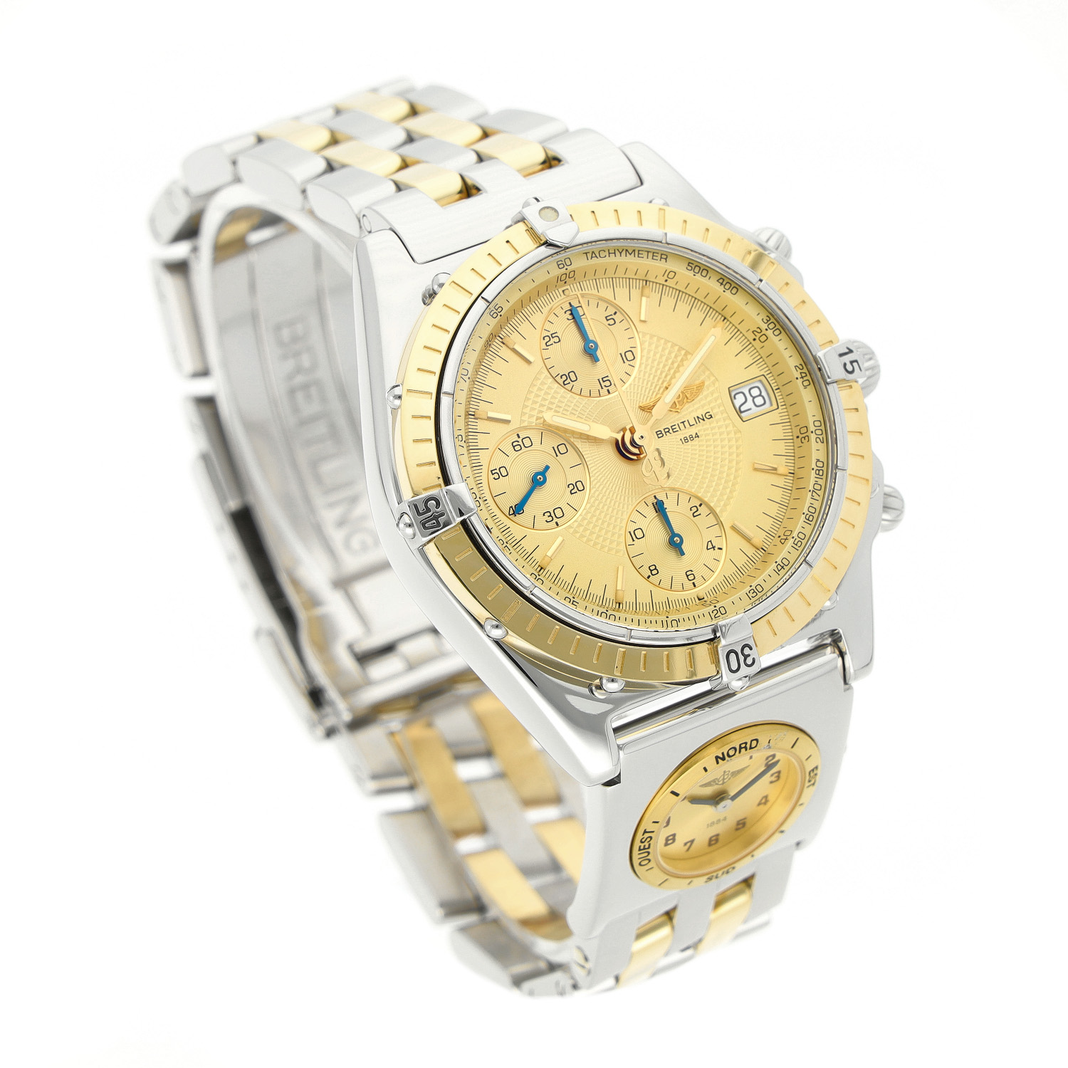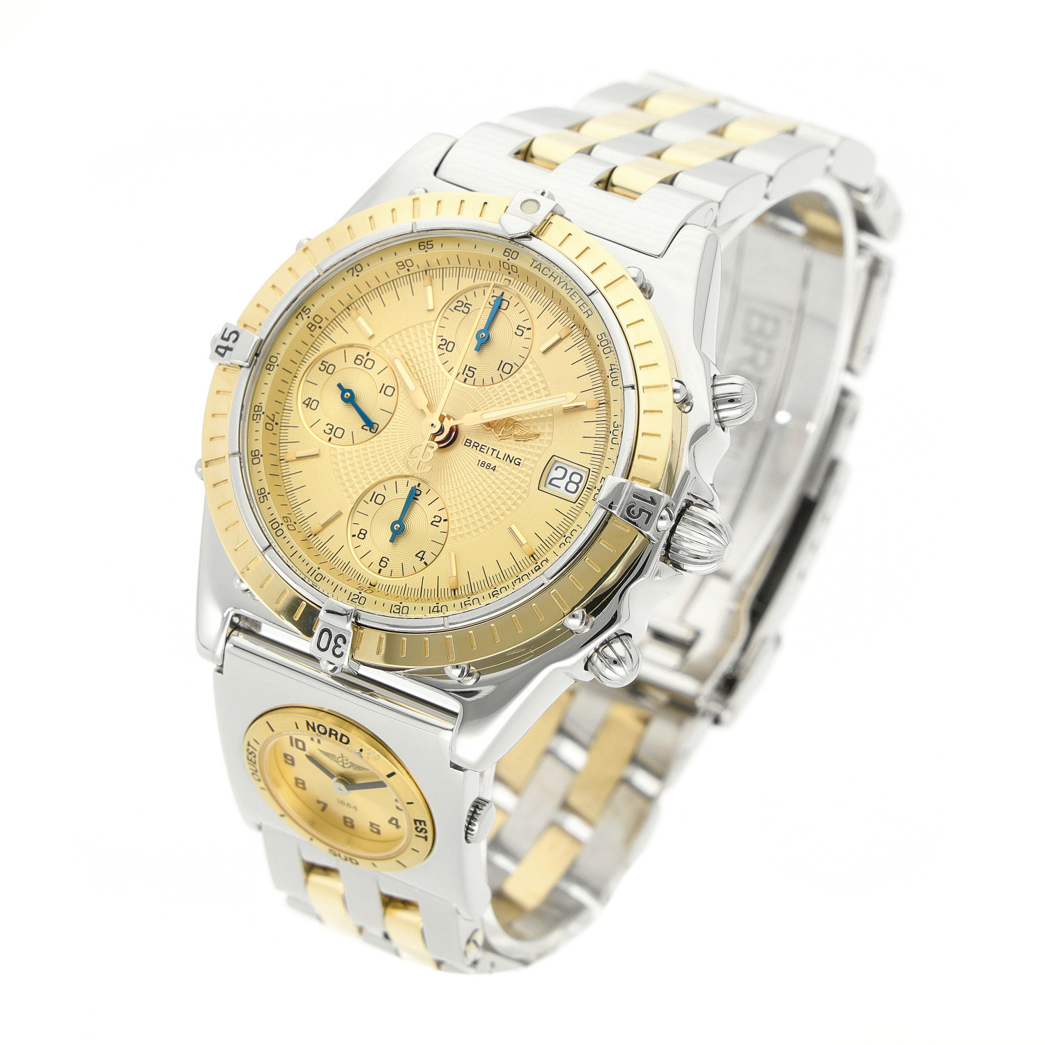 Breitling mit einem 39mm Gehäuse in Gold/Stahl und Faltschließe. Die Herren Breitling Uhr befindet sich in einem sehr guten Zustand.