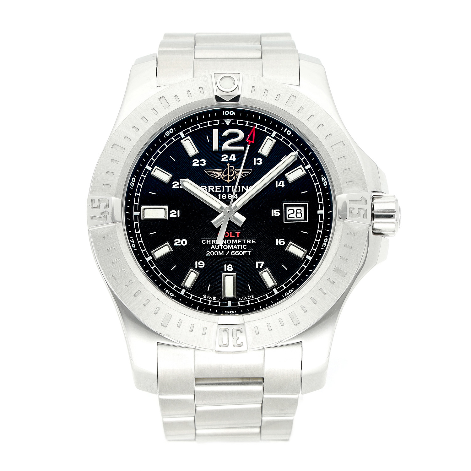 Breitling Colt ca. aus dem Jahre 2017 mit einem 44mm Gehäuse in Edelstahl und Faltschließe. Die Herren Breitling Uhr befindet sich in einem sehr guten Zustand.