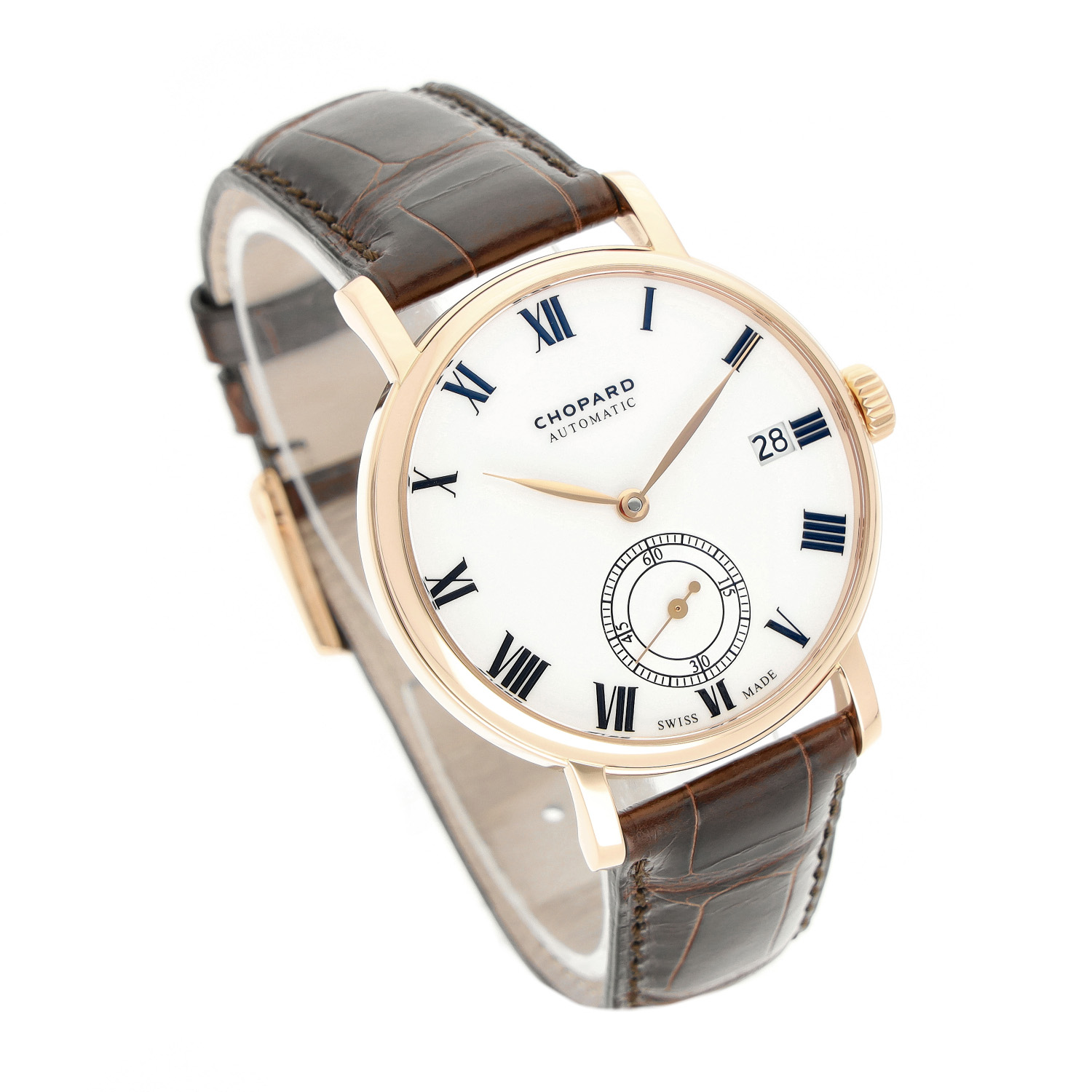 Chopard Classic aus dem Jahre 2012 mit einem 38mm Gehäuse in Roségold und Dornschließe. Die Herren Chopard Uhr befindet sich in einem sehr guten Zustand.