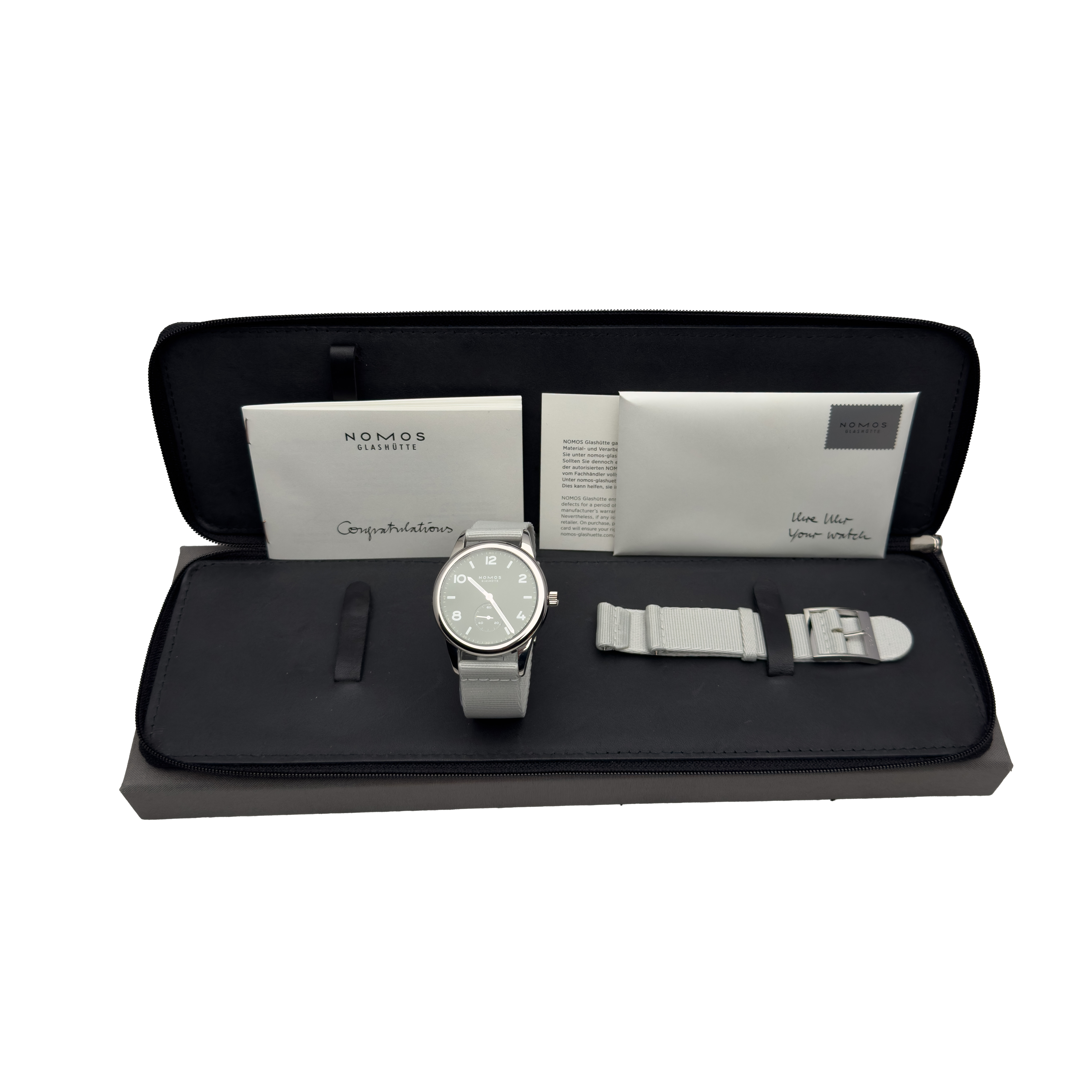 Nomos Club Automatic aus dem Jahre 2021 mit einem 40mm Gehäuse in Edelstahl und Dornschließe. Die Herren Nomos Uhr befindet sich in einem ungetragenem Zustand.