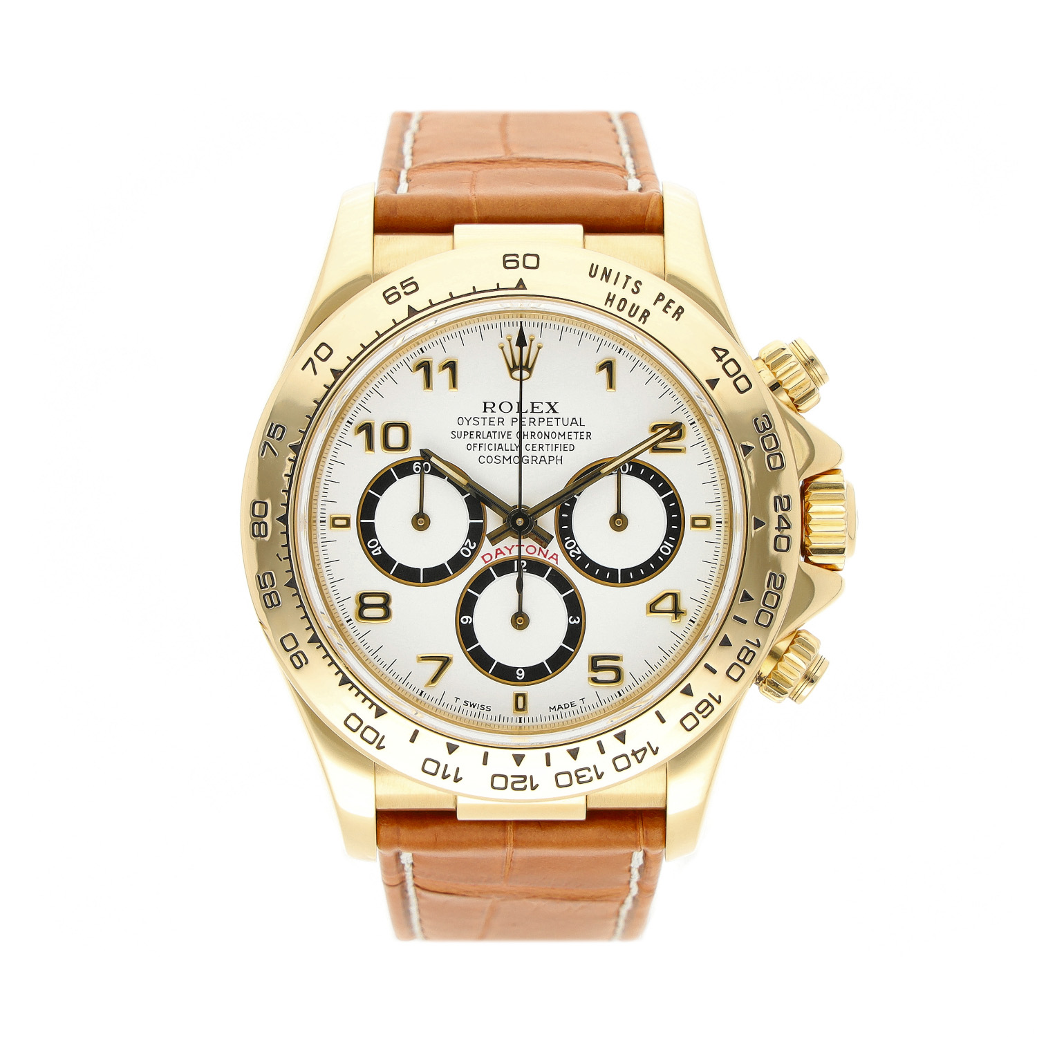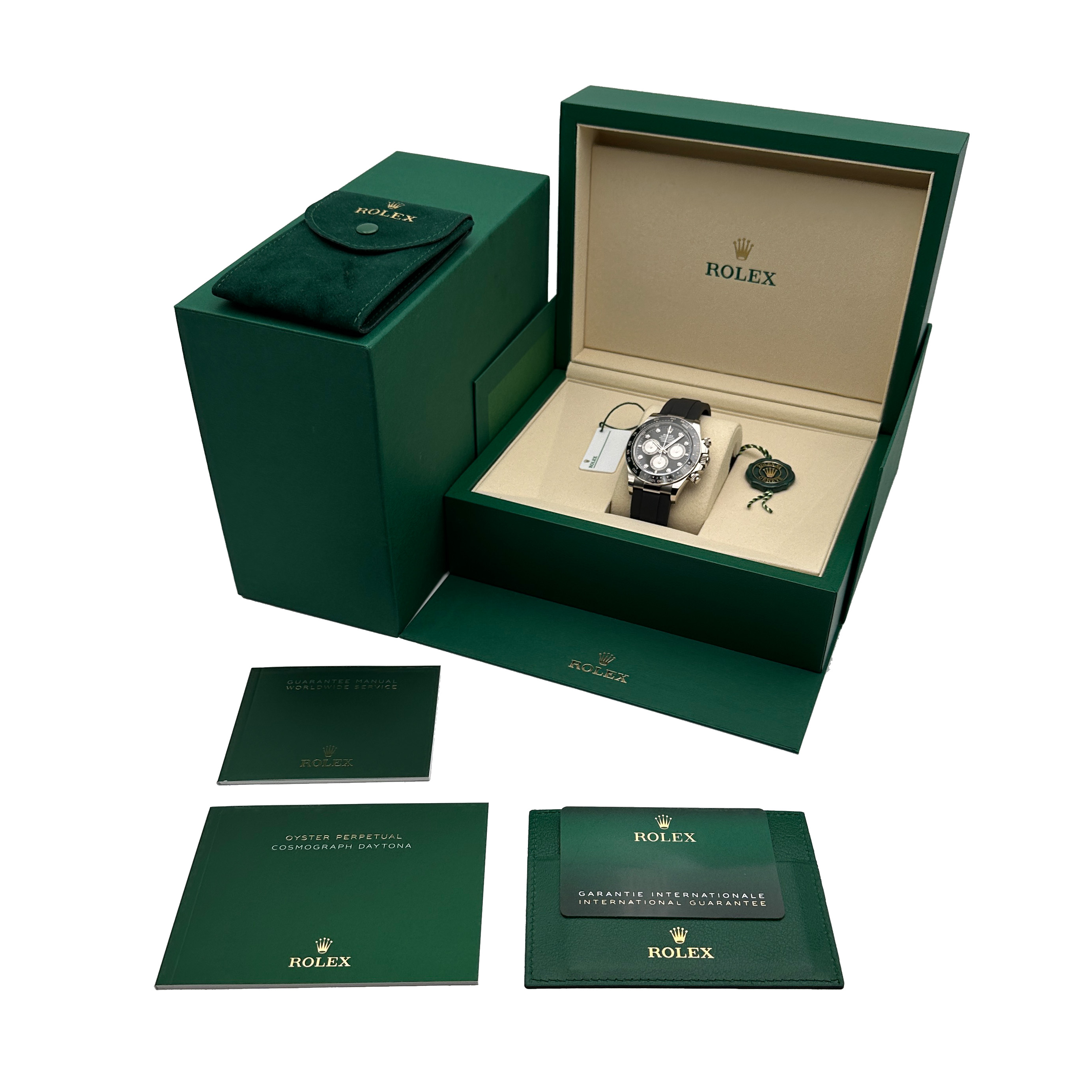 Rolex Daytona aus dem Jahre 2026 mit einem 40mm Gehäuse in Weißgold und Faltschließe. Die Herren Rolex Uhr befindet sich in einem sehr guten Zustand.