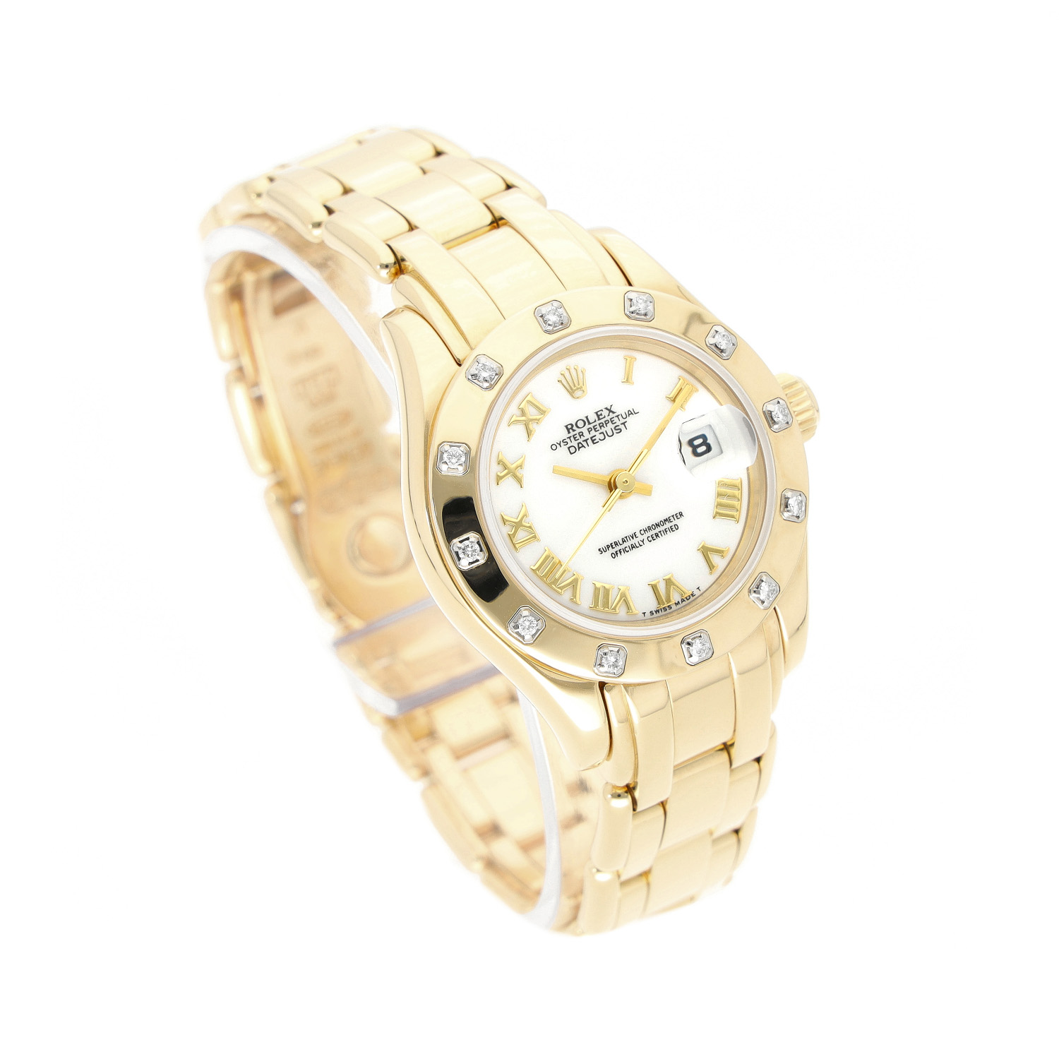 Datejust 29 Pearlmaster Ref. 69318 White Dial Factory Diamond 18K Gold 1996 Full Set LC100