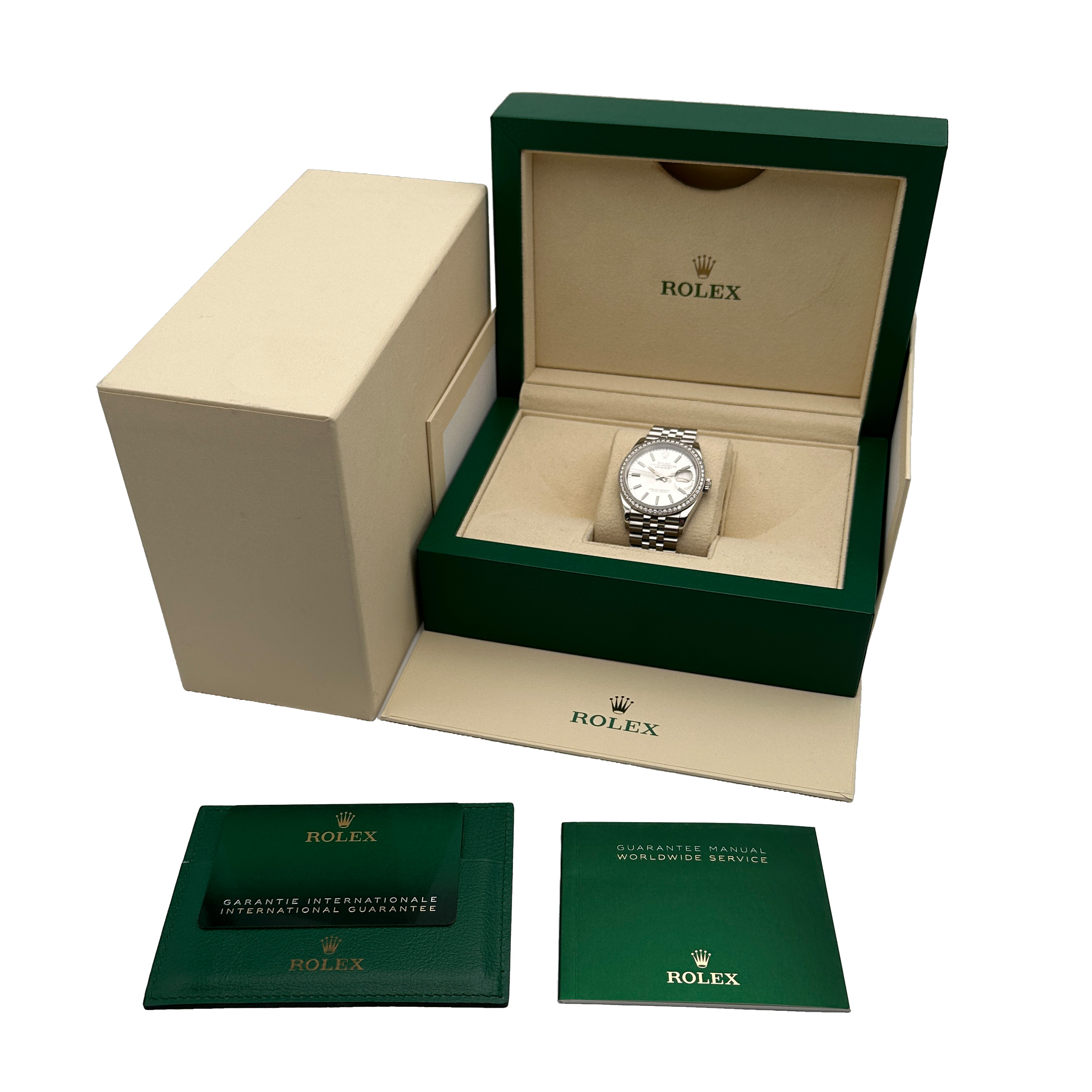 Entdecken Sie ähnliche Modelle wie die Rolex Datejust 36 Ref. 126284RBR Silver Dial Factory Diamonds Edelstahl 2021 Full Set und finden Sie Ihr passendes Modell.