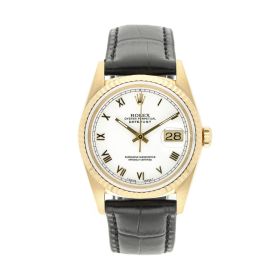 Rolex Datejust aus dem Jahre 1991 mit einem 36mm Gehäuse in Gelbgold und Dornschließe. Die Herren Rolex Uhr befindet sich in einem sehr guten Zustand.