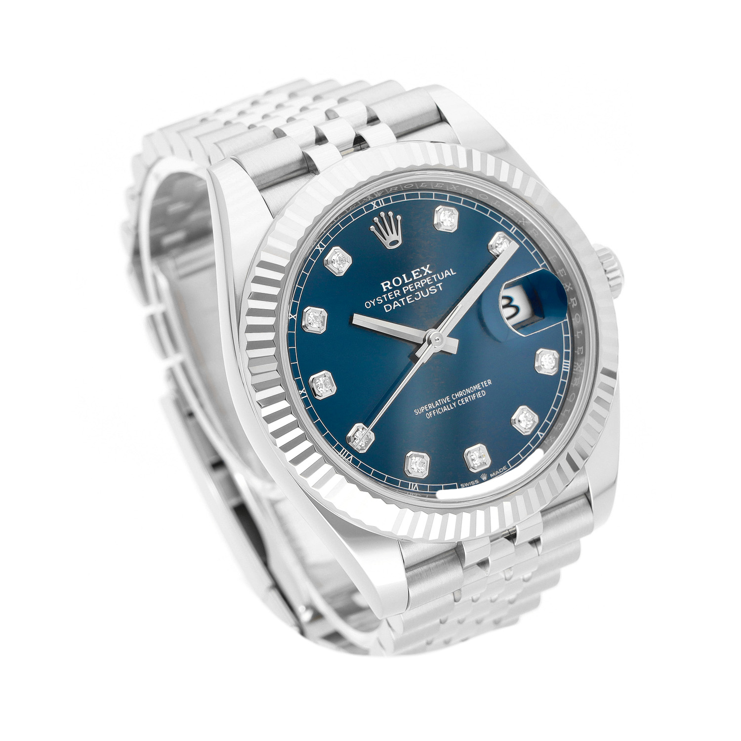 Datejust 41 Ref. 126334 Blue Dial Factory Diamonds Stahl/Weißgold Full Set