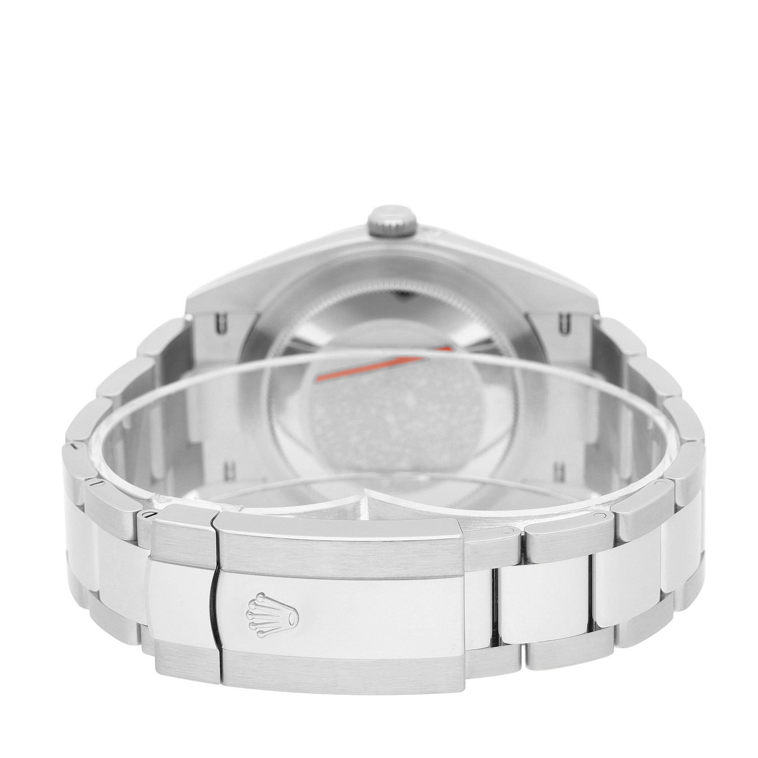 Die Uhr ist ungetragen, unpoliert und sieht aus wie neu. Ohne sichtbare Gebrauchsspuren oder lediglich mit minimalen Mikrospuren. Die dargestellten Fotos sind von der Uhr selbst. Auf Anfrage senden wir Ihnen gern weitere Bilder zu.