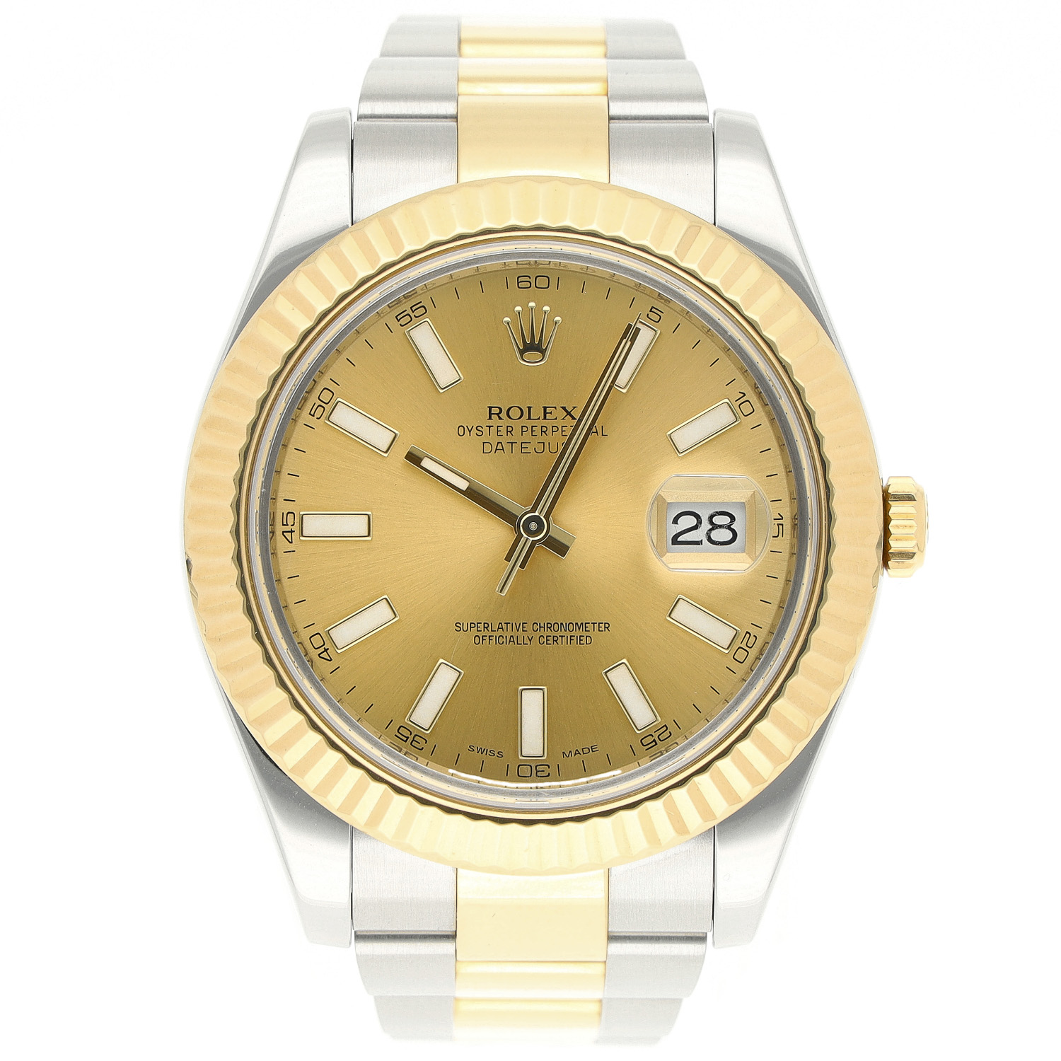 Rolex Datejust 41 aus dem Jahre 2017 mit einem 41mm Gehäuse in Gold/Stahl und Faltschließe. Die Herren Rolex Uhr befindet sich in einem sehr guten Zustand.