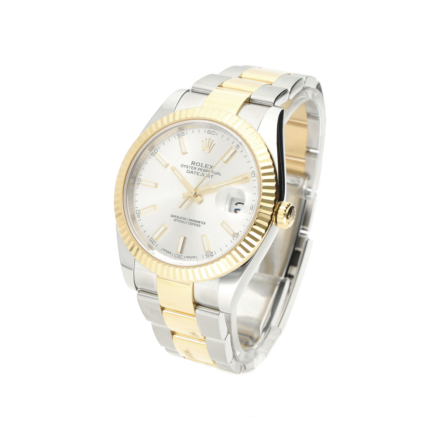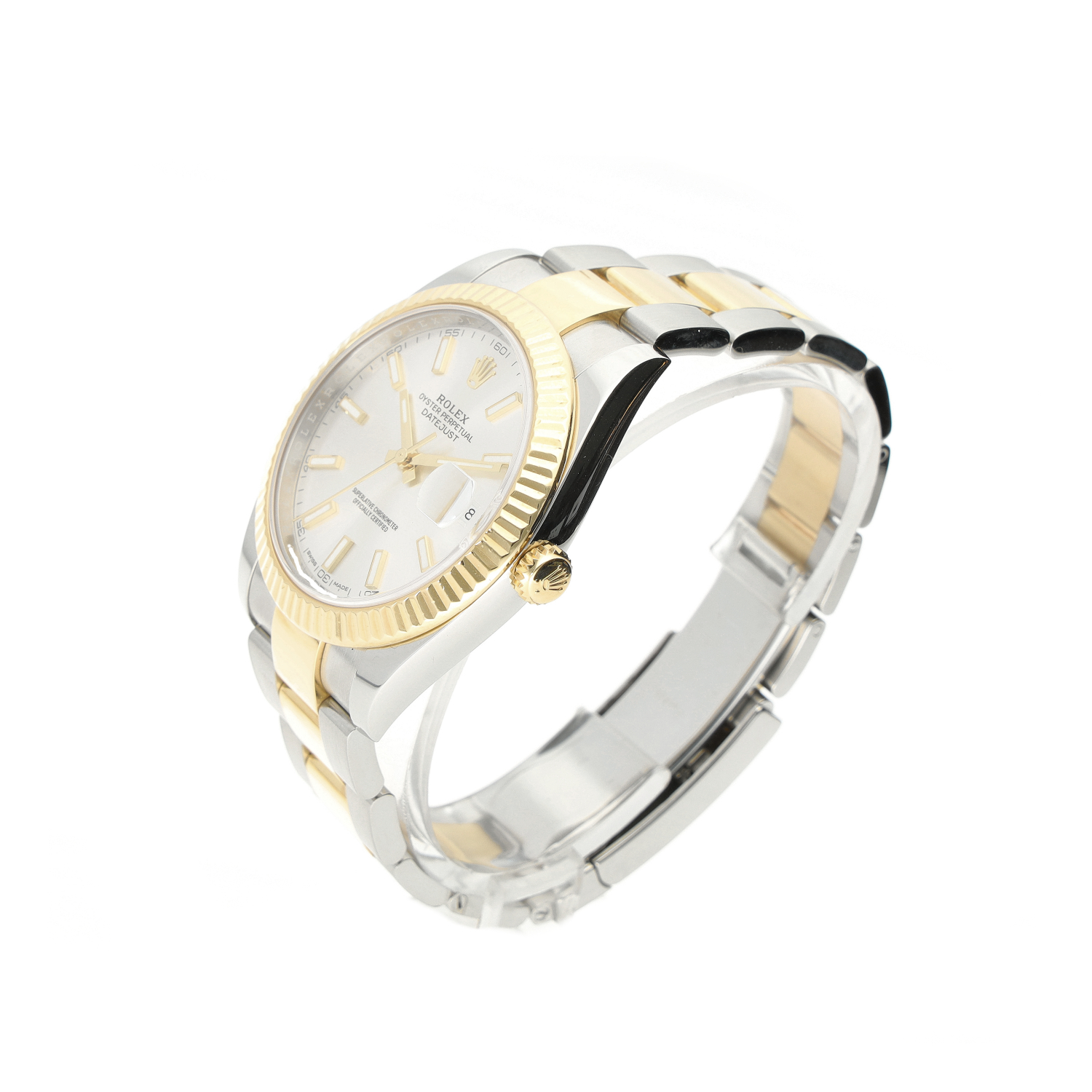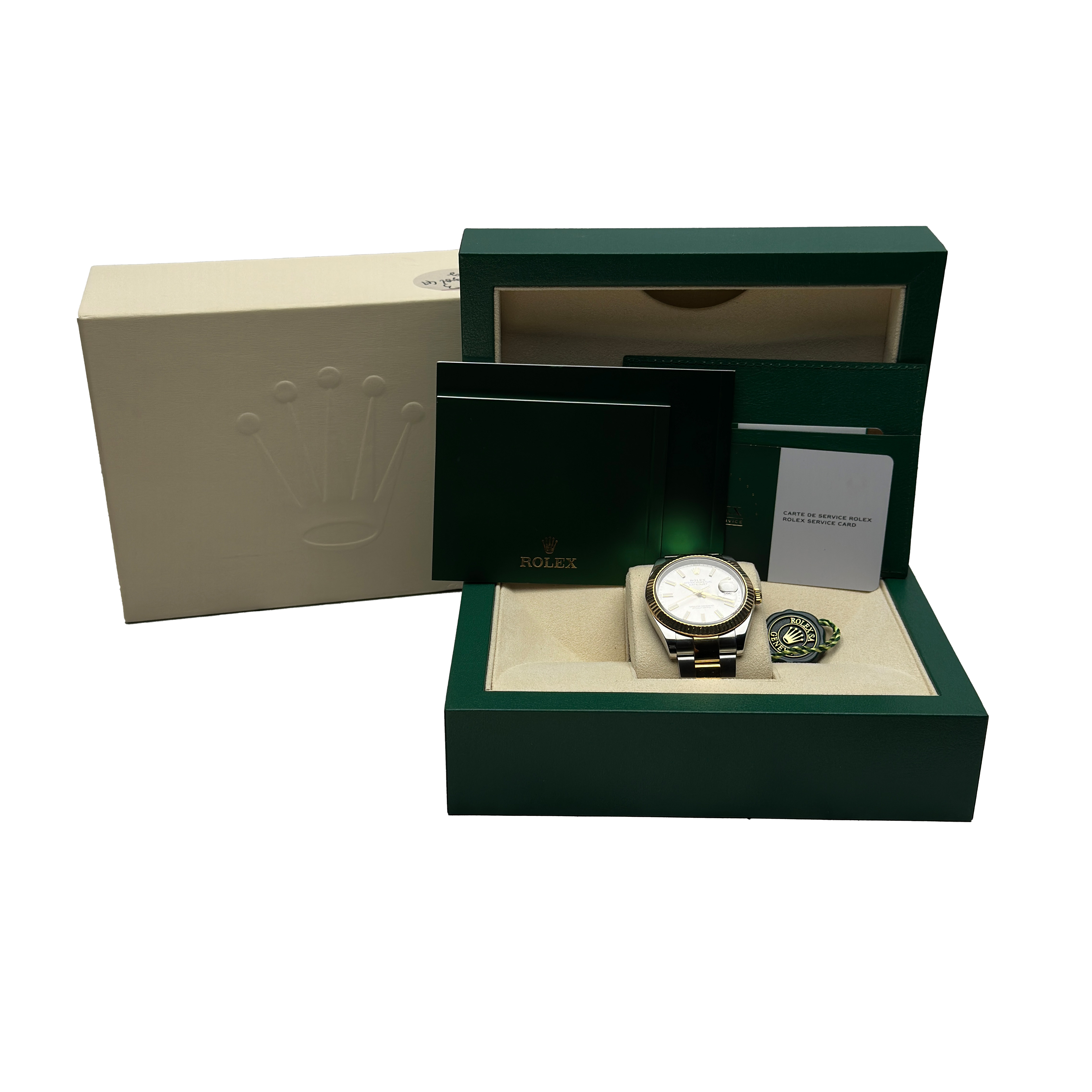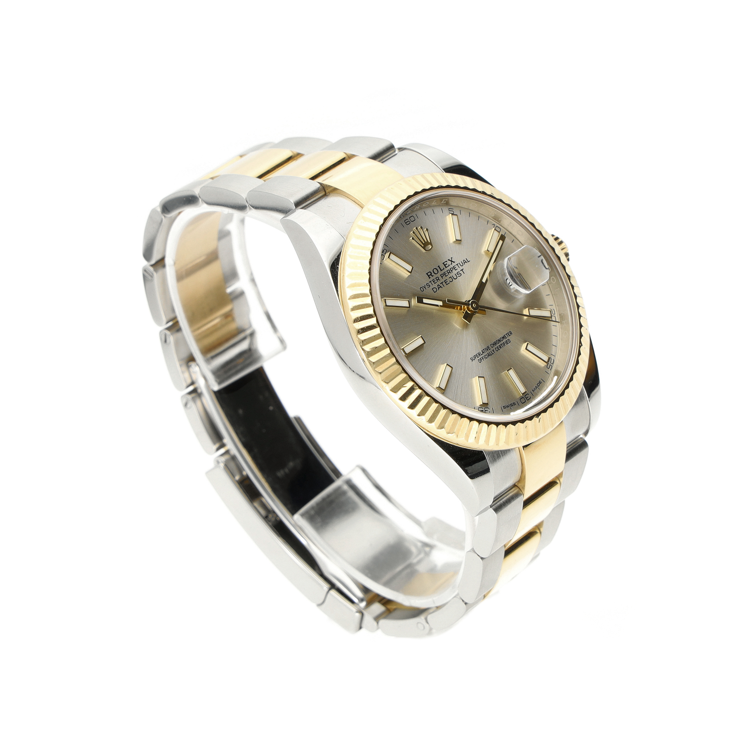 Rolex Datejust 41 aus dem Jahre 2017 mit einem 41mm Gehäuse in Gold/Stahl und Faltschließe. Die Herren Rolex Uhr befindet sich in einem sehr guten Zustand.