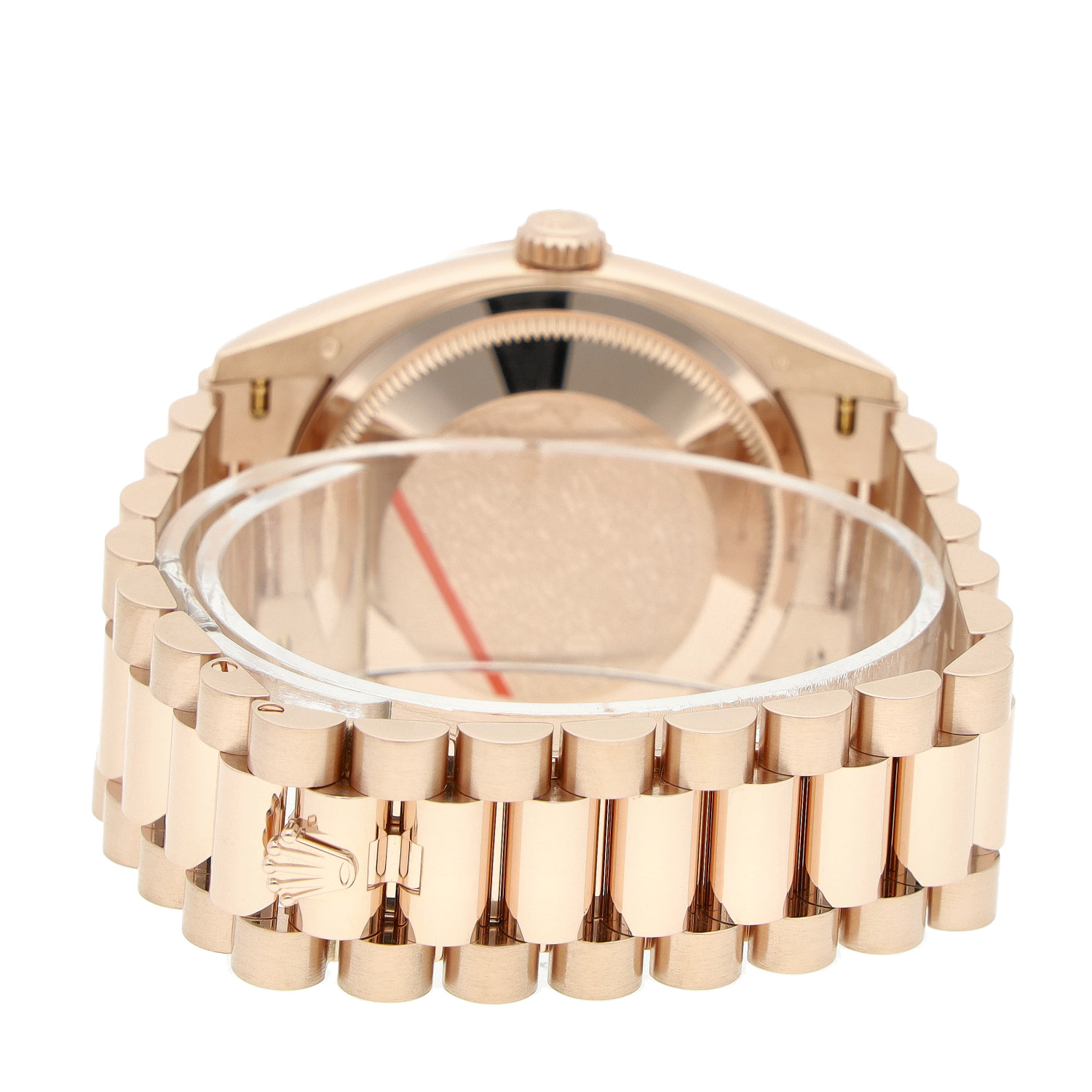 Rolex Day-Date aus dem Jahre 2022 mit einem 36mm Gehäuse in Roségold und Faltschließe. Die Unisex Rolex Uhr befindet sich in einem sehr guten Zustand.