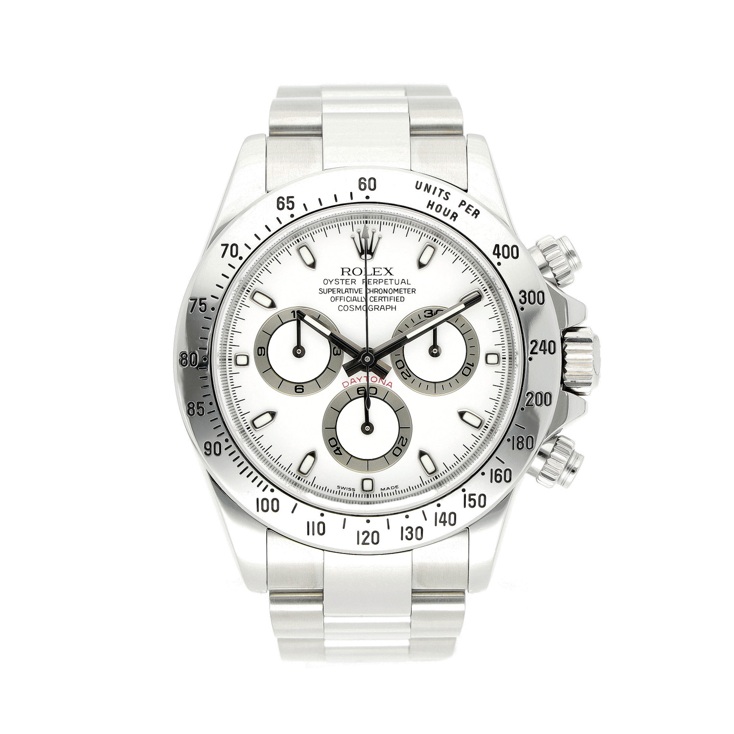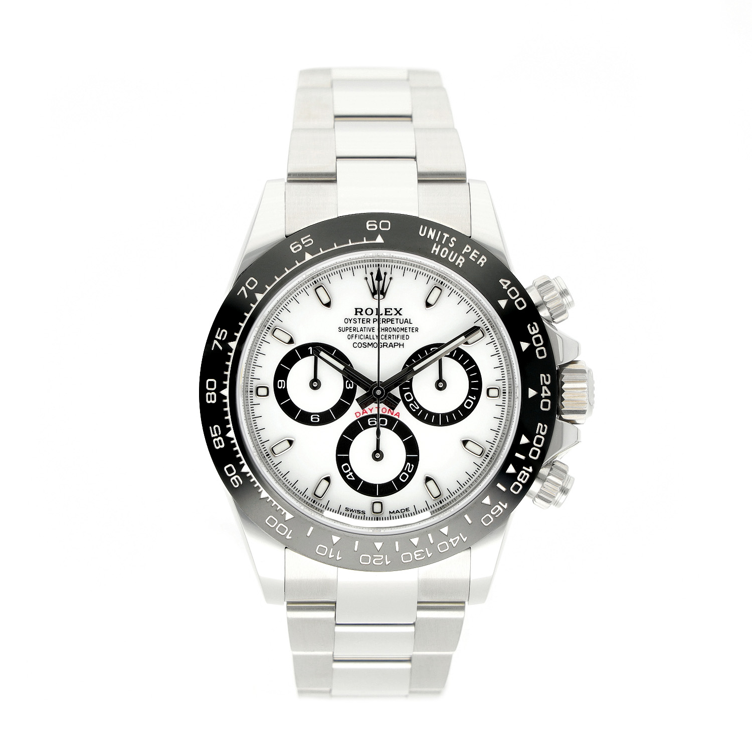 Rolex Daytona aus dem Jahre 2024 mit einem 40mm Gehäuse in Edelstahl und Faltschließe. Die Herren Rolex Uhr befindet sich in einem sehr guten Zustand.