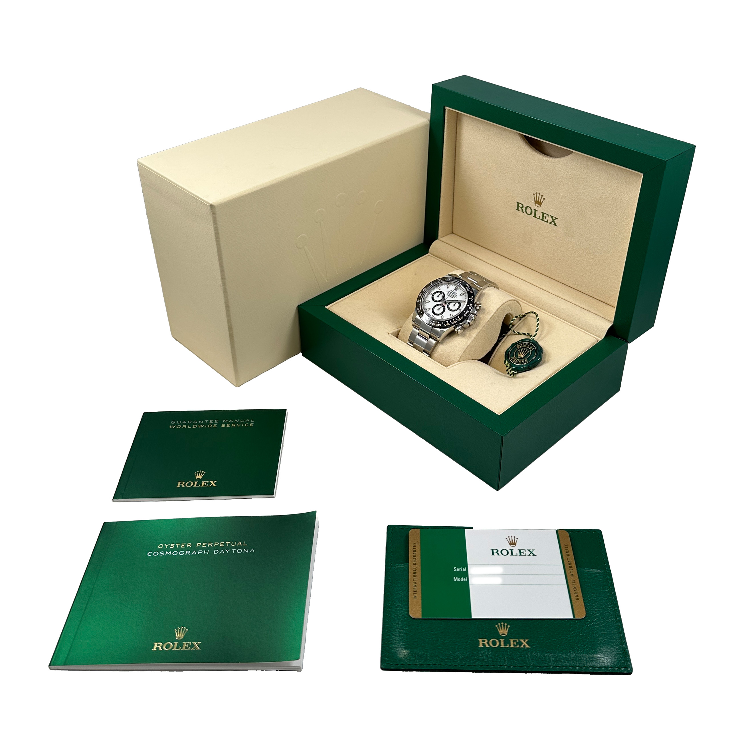 Rolex Daytona aus dem Jahre 2020 mit einem 40mm Gehäuse in Edelstahl und Faltschließe. Die Herren Rolex Uhr befindet sich in einem ungetragenem Zustand.