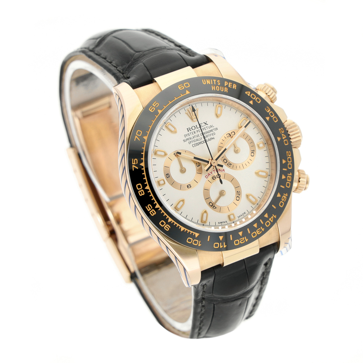Rolex Daytona aus dem Jahre 2014 mit einem 40mm Gehäuse in Roségold und Faltschließe. Die Herren Rolex Uhr befindet sich in einem sehr guten Zustand.