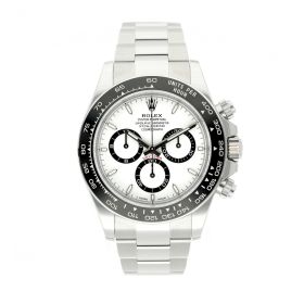 Rolex Daytona aus dem Jahre 2024 mit einem 40mm Gehäuse in Edelstahl und Faltschließe. Die Herren Rolex Uhr befindet sich in einem ungetragenem Zustand.