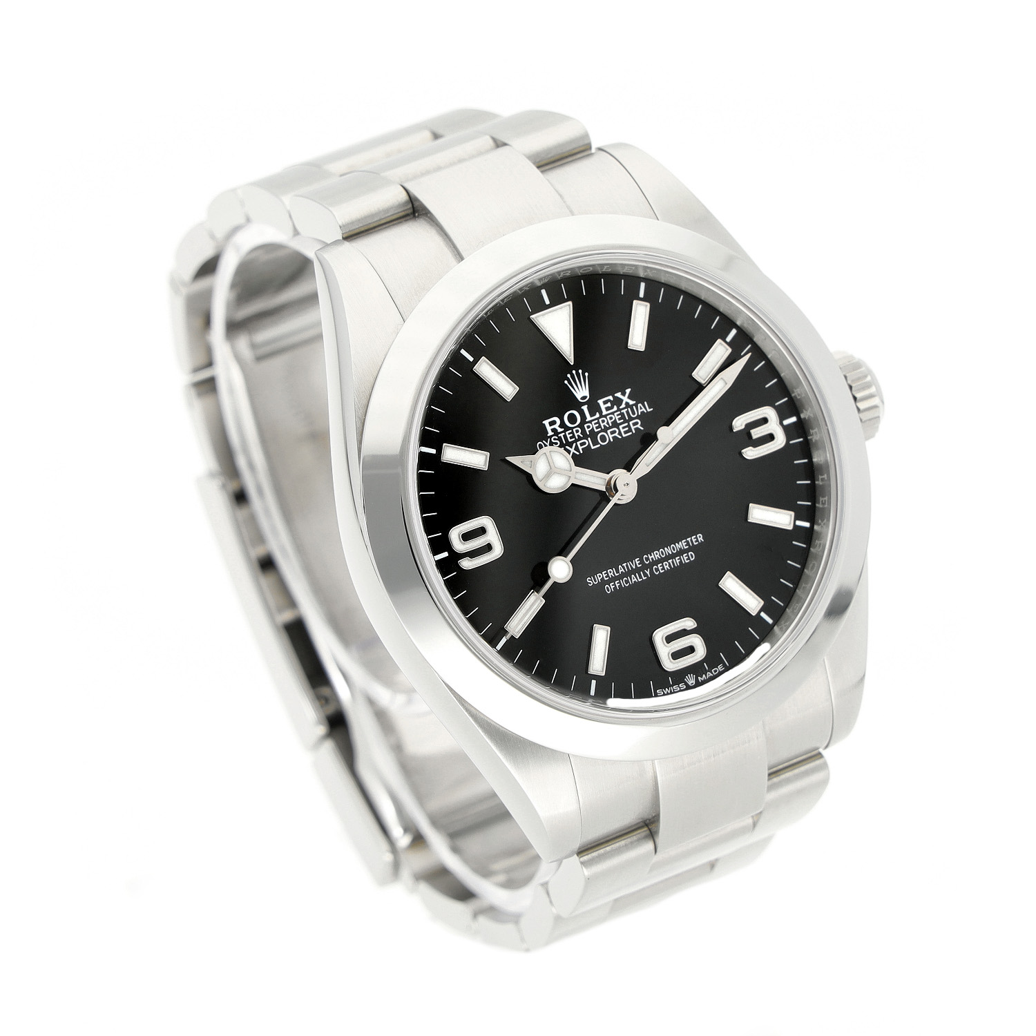 Rolex Explorer I aus dem Jahre 2024 mit einem 40mm Gehäuse in Edelstahl und Faltschließe. Die Herren Rolex Uhr befindet sich in einem sehr guten Zustand.