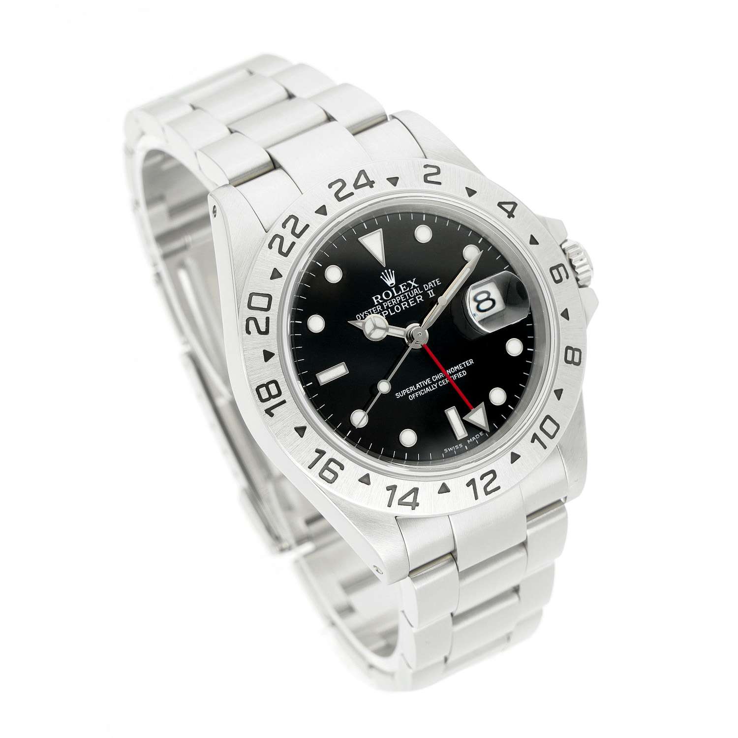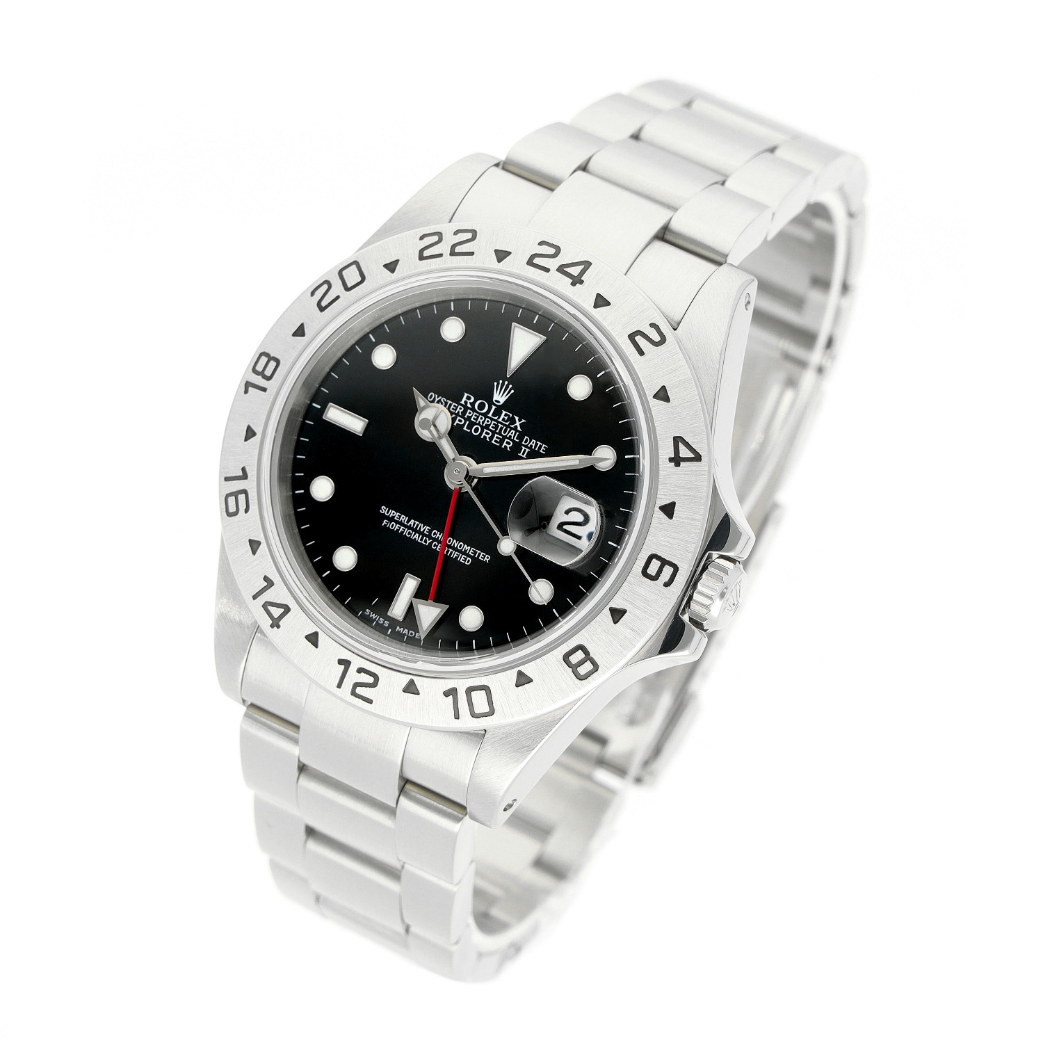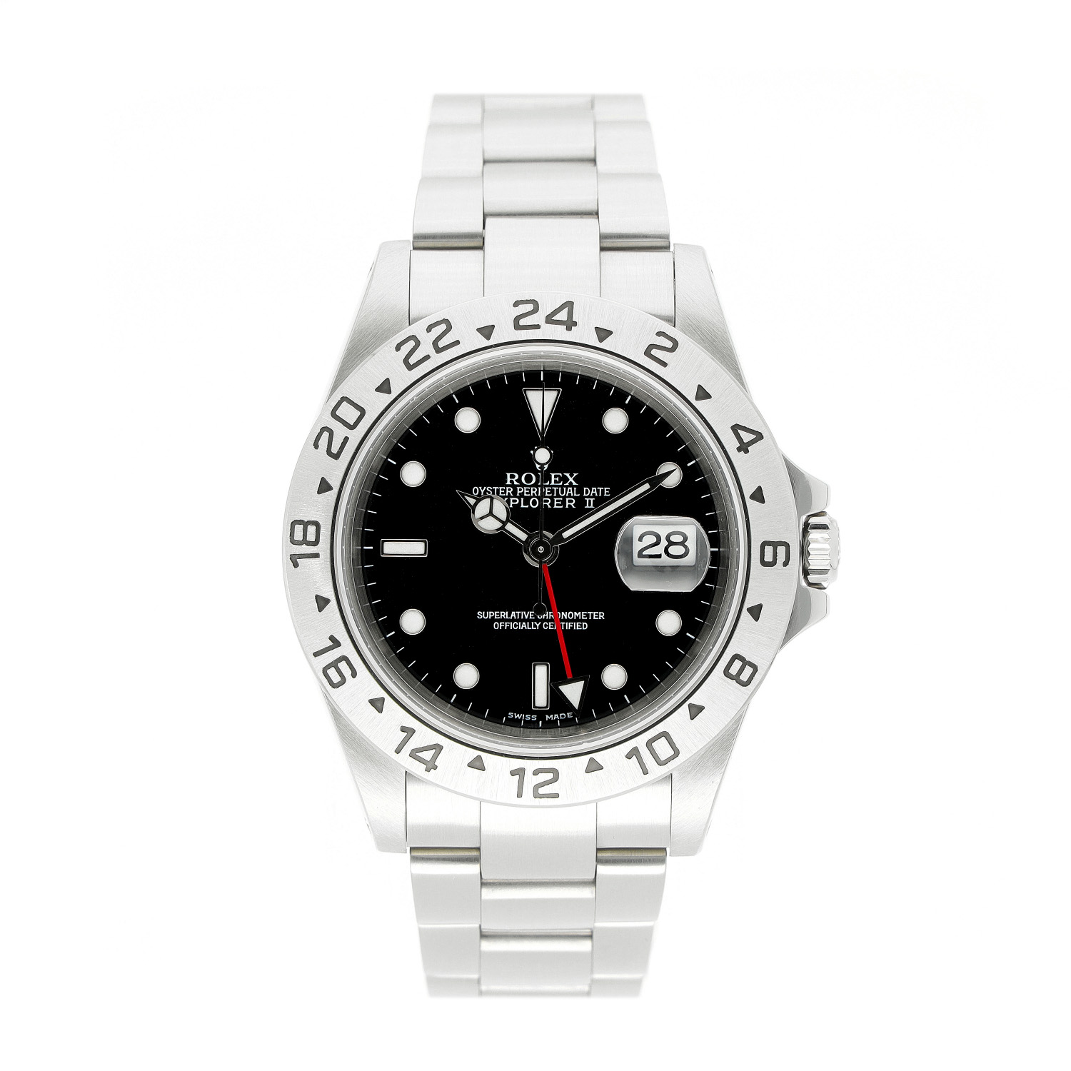Rolex Explorer II aus dem Jahre 2002 mit einem 40mm Gehäuse in Edelstahl und Faltschließe. Die Herren Rolex Uhr befindet sich in einem sehr guten Zustand.