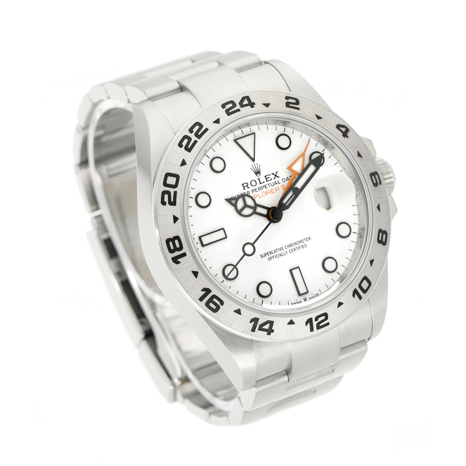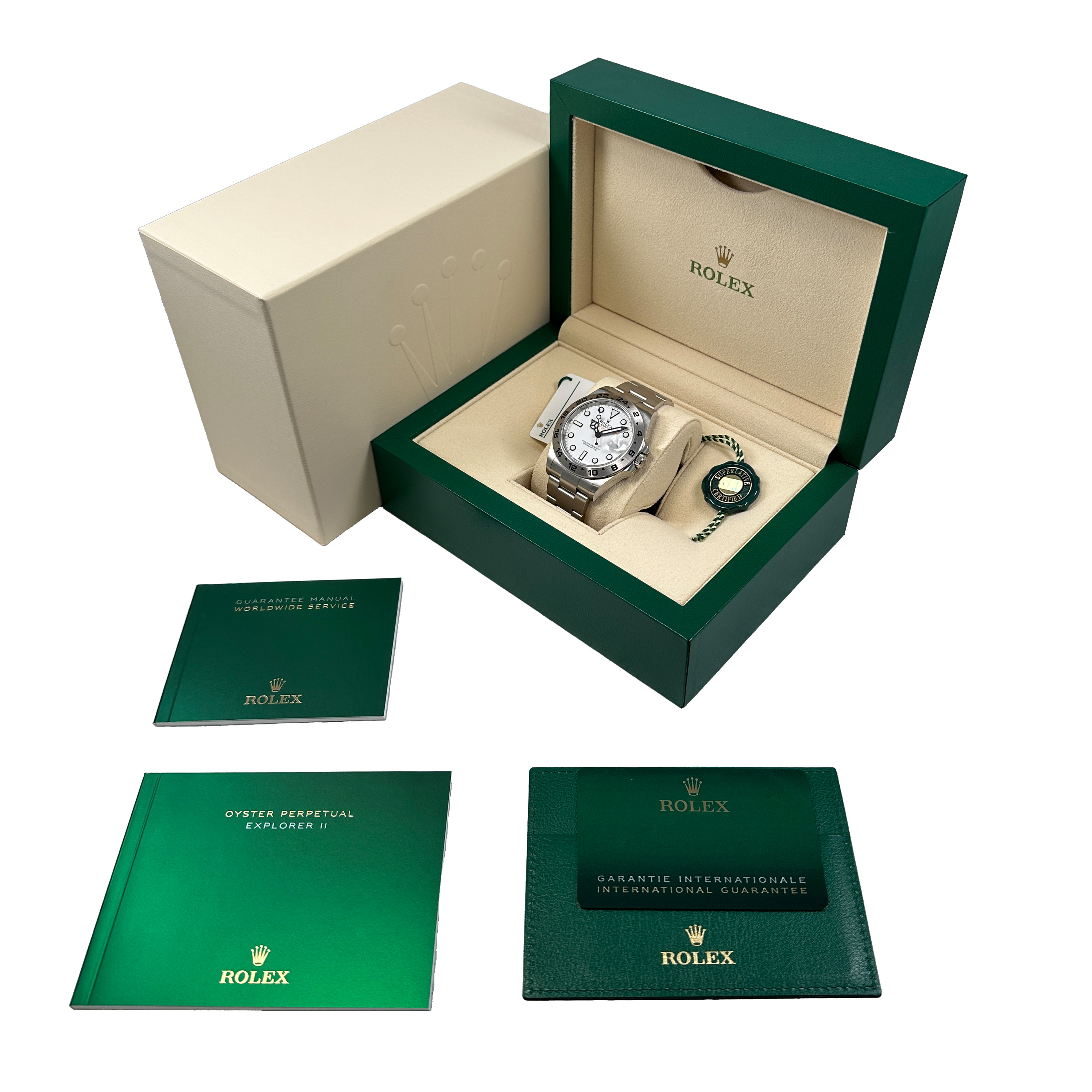 Rolex Explorer II aus dem Jahre 2022 mit einem 42mm Gehäuse in Edelstahl und Faltschließe. Die Herren Rolex Uhr befindet sich in einem ungetragenem Zustand.