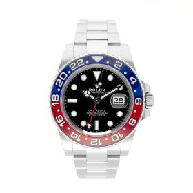 Rolex GMT-Master II aus dem Jahre 2022 mit einem 40mm Gehäuse in Edelstahl und Faltschließe. Die Herren Rolex Uhr befindet sich in einem sehr guten Zustand.
