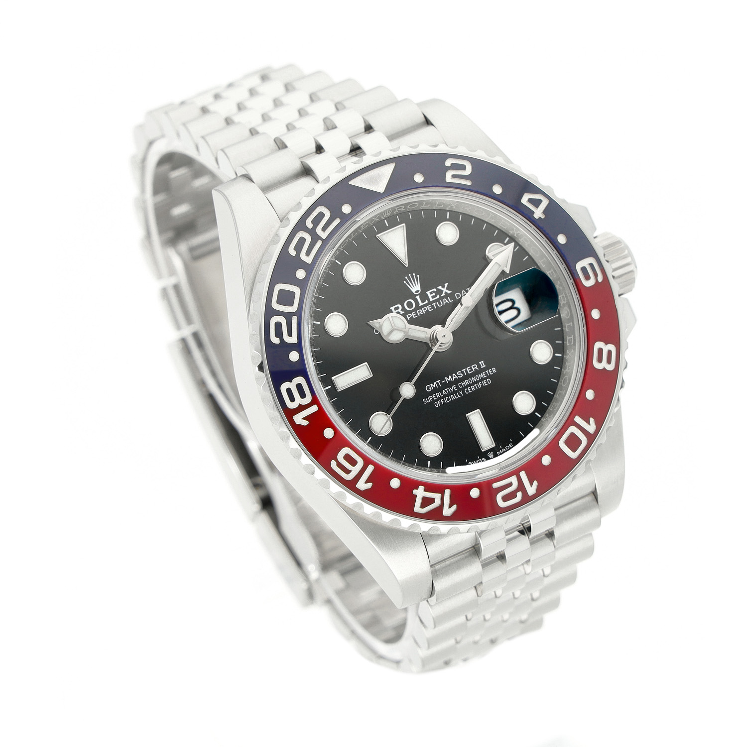 Rolex GMT-Master II aus dem Jahre 2020 mit einem 40mm Gehäuse in Edelstahl und Faltschließe. Die Herren Rolex Uhr befindet sich in einem sehr guten Zustand.