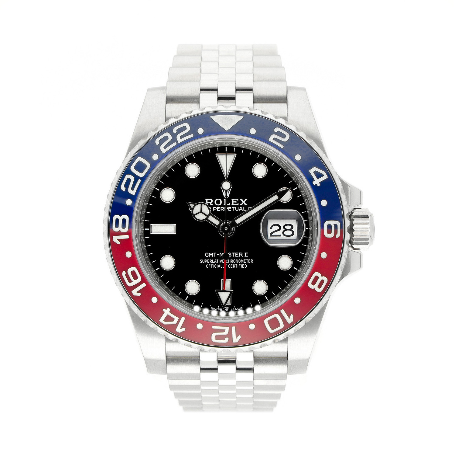 Rolex GMT-Master II aus dem Jahre 2026 mit einem 40mm Gehäuse in Edelstahl und Faltschließe. Die Herren Rolex Uhr befindet sich in einem ungetragenem Zustand.