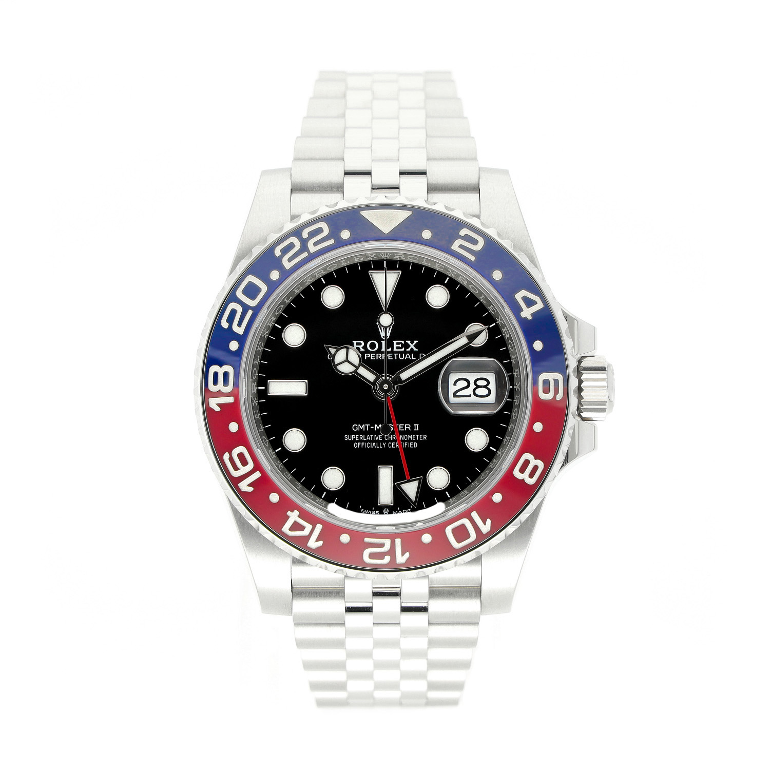 Rolex GMT-Master II aus dem Jahre 2022 mit einem 40mm Gehäuse in Edelstahl und Faltschließe. Die Herren Rolex Uhr befindet sich in einem sehr guten Zustand.
