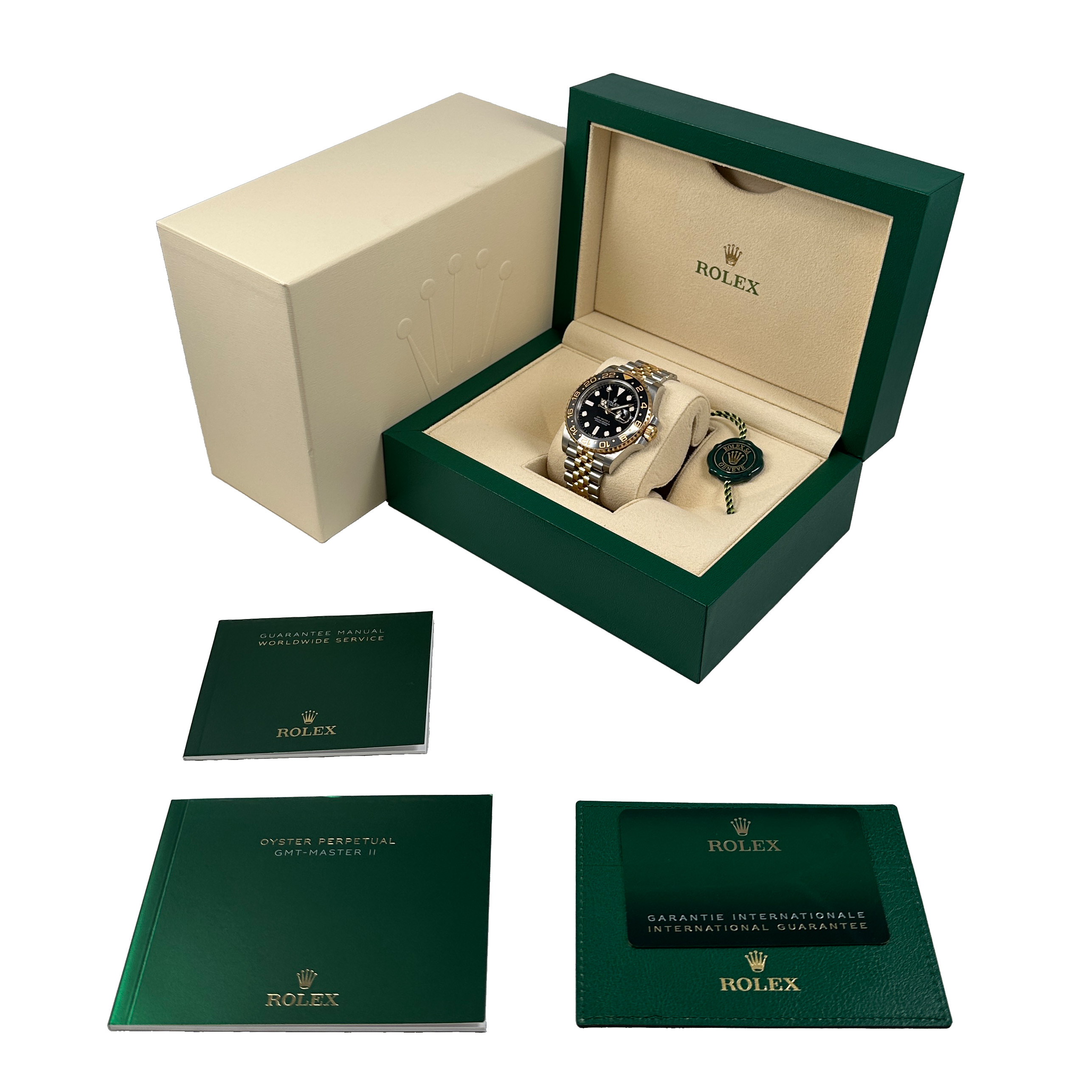 Rolex GMT-Master II aus dem Jahre 2023 mit einem 40mm Gehäuse in Gold/Stahl und Faltschließe. Die Herren Rolex Uhr befindet sich in einem sehr guten Zustand.