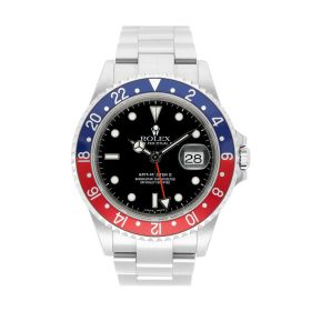 Rolex GMT-Master aus dem Jahre 2005 mit einem 40mm Gehäuse in Edelstahl und Faltschließe. Die Herren Rolex Uhr befindet sich in einem sehr guten Zustand.