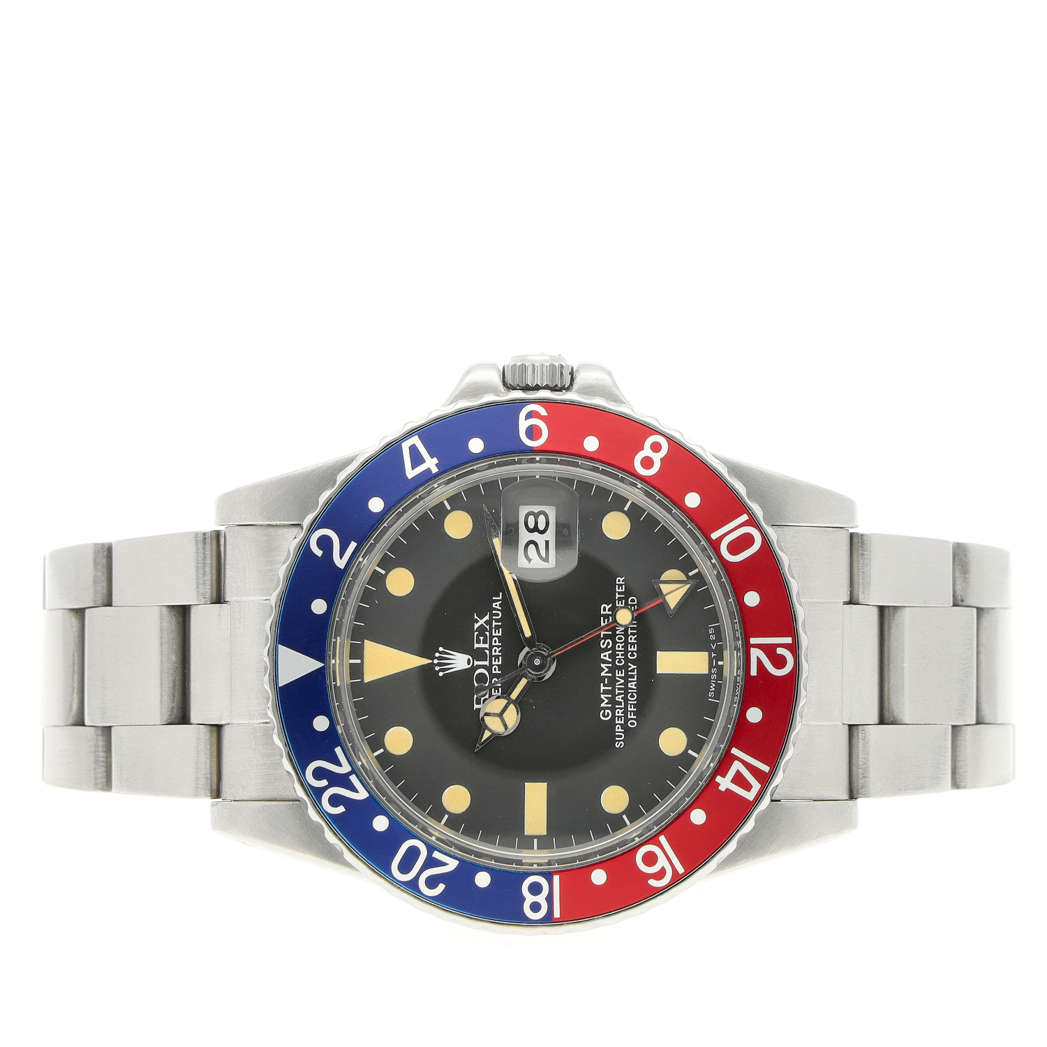 Rolex GMT-Master aus dem Jahre 1983 mit einem 40mm Gehäuse in Edelstahl und Faltschließe. Die Herren Rolex Uhr befindet sich in einem sehr guten Zustand.