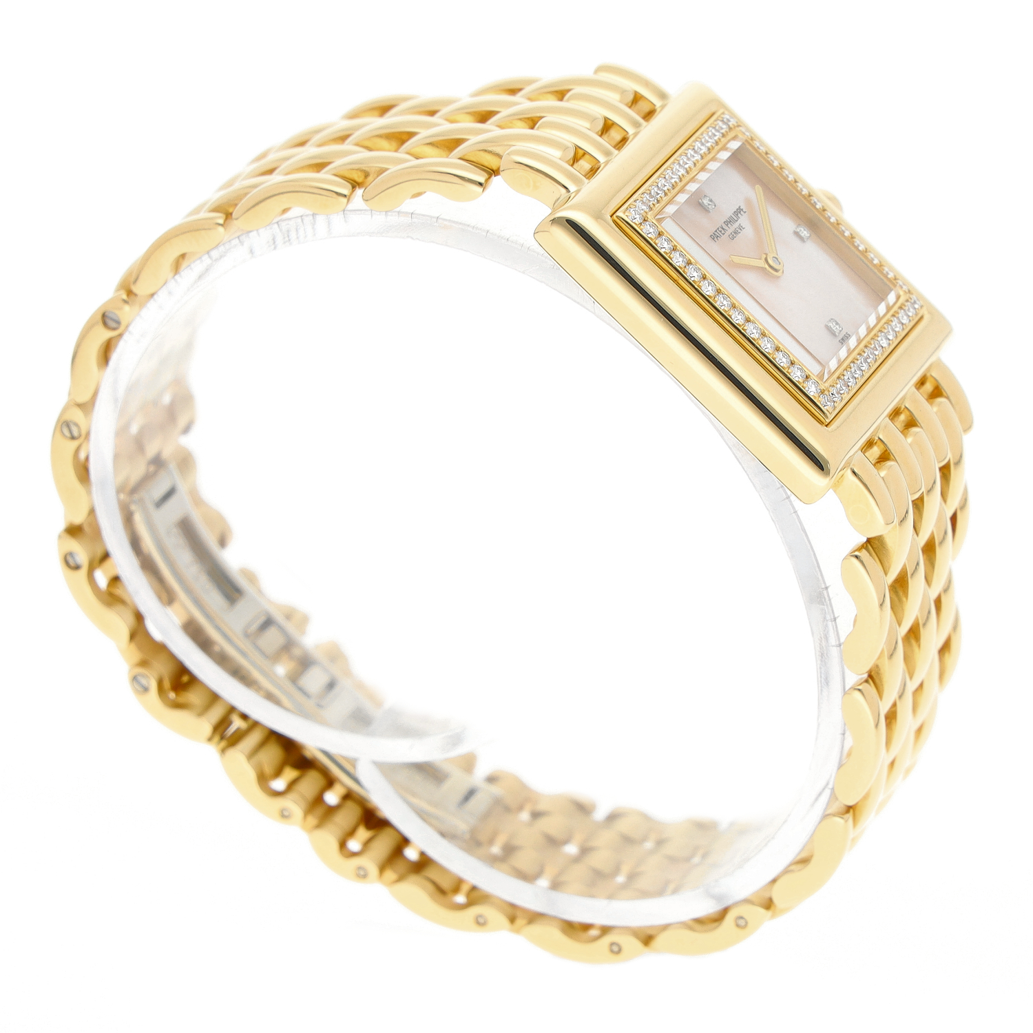 Patek Philippe Gondolo aus dem Jahre 2006 mit einem 28mm Gehäuse in Gelbgold und Faltschließe, verdeckt. Die Damen Patek Philippe Uhr befindet sich in einem sehr guten Zustand.