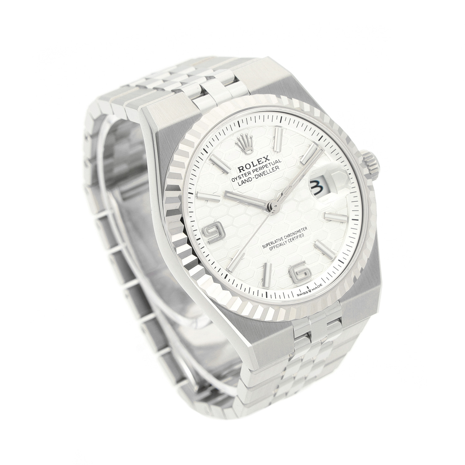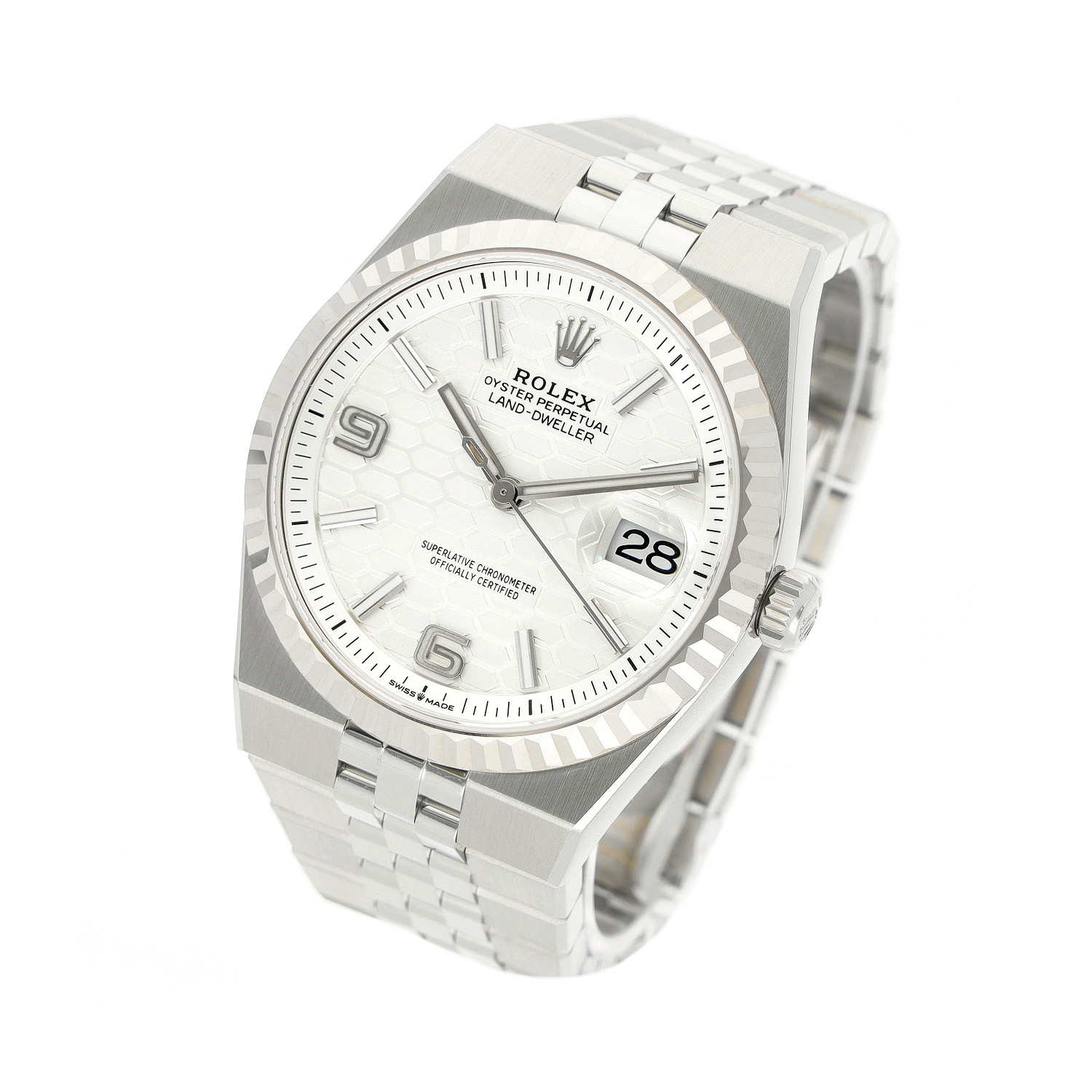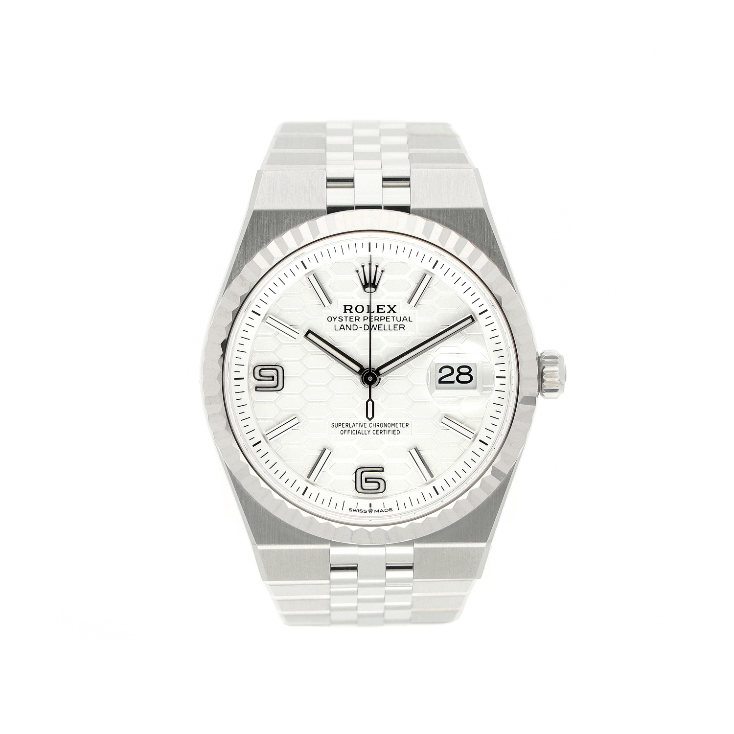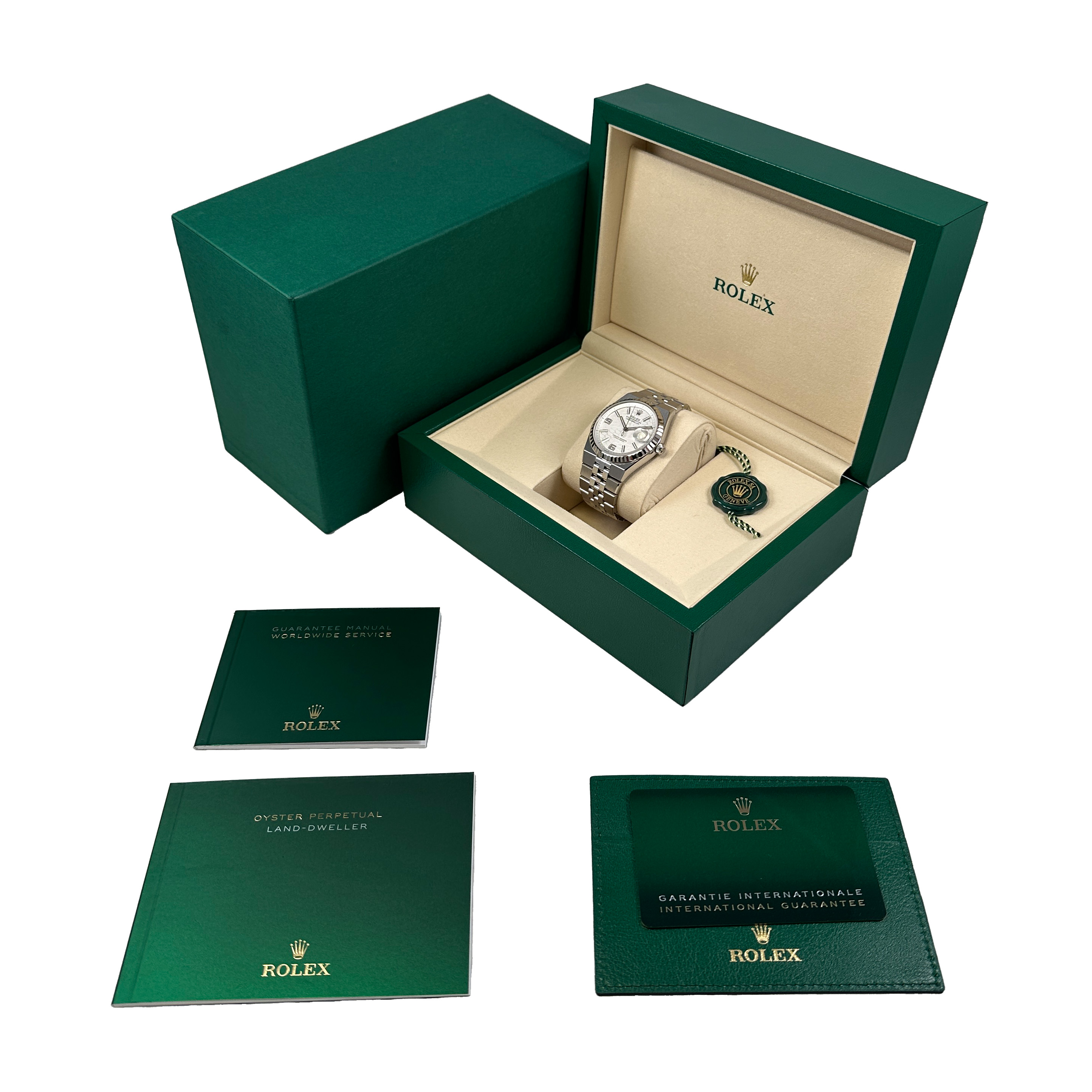 Rolex Land-Dweller aus dem Jahre 2025 mit einem 36mm Gehäuse in Edelstahl und Faltschließe. Die Herren Rolex Uhr befindet sich in einem ungetragenem Zustand.