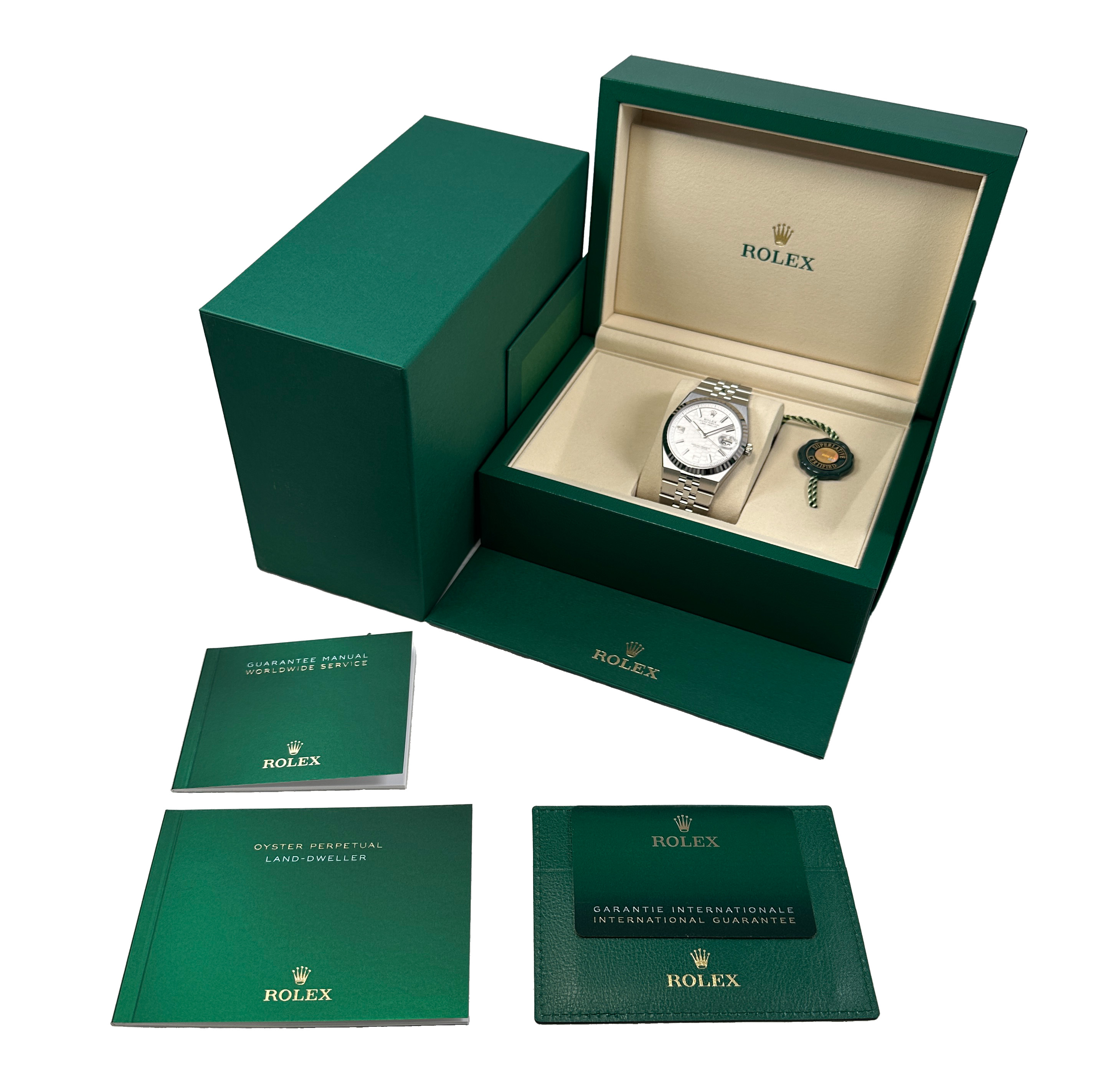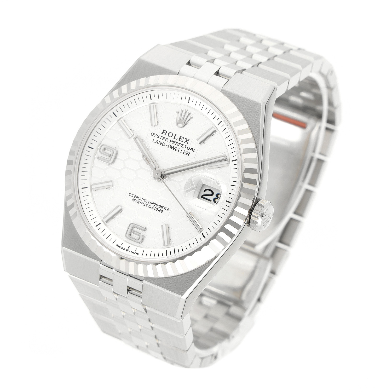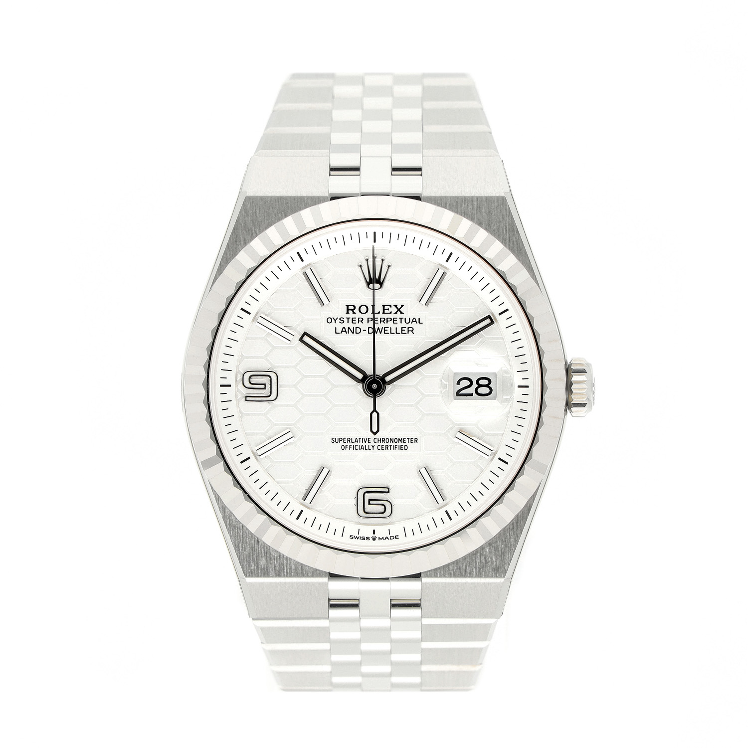 Rolex Land-Dweller aus dem Jahre 2025 mit einem 40mm Gehäuse in Edelstahl und Faltschließe. Die Herren Rolex Uhr befindet sich in einem ungetragenem Zustand.