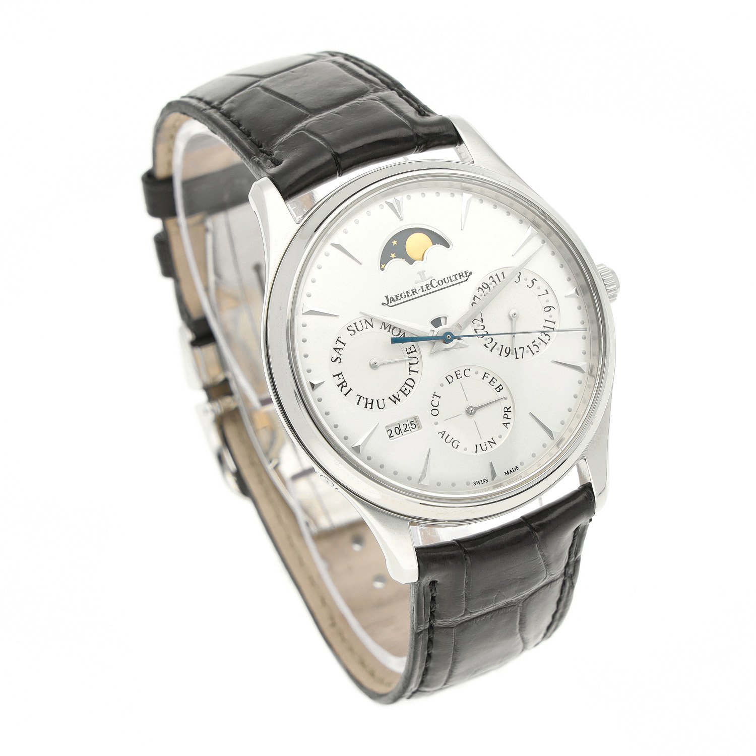 Jaeger LeCoultre Master Ultra Thin Perpetual aus dem Jahre 2021 mit einem 39mm Gehäuse in Edelstahl und Doppelfaltschließe. Die Herren Jaeger LeCoultre Uhr befindet sich in einem sehr guten Zustand.
