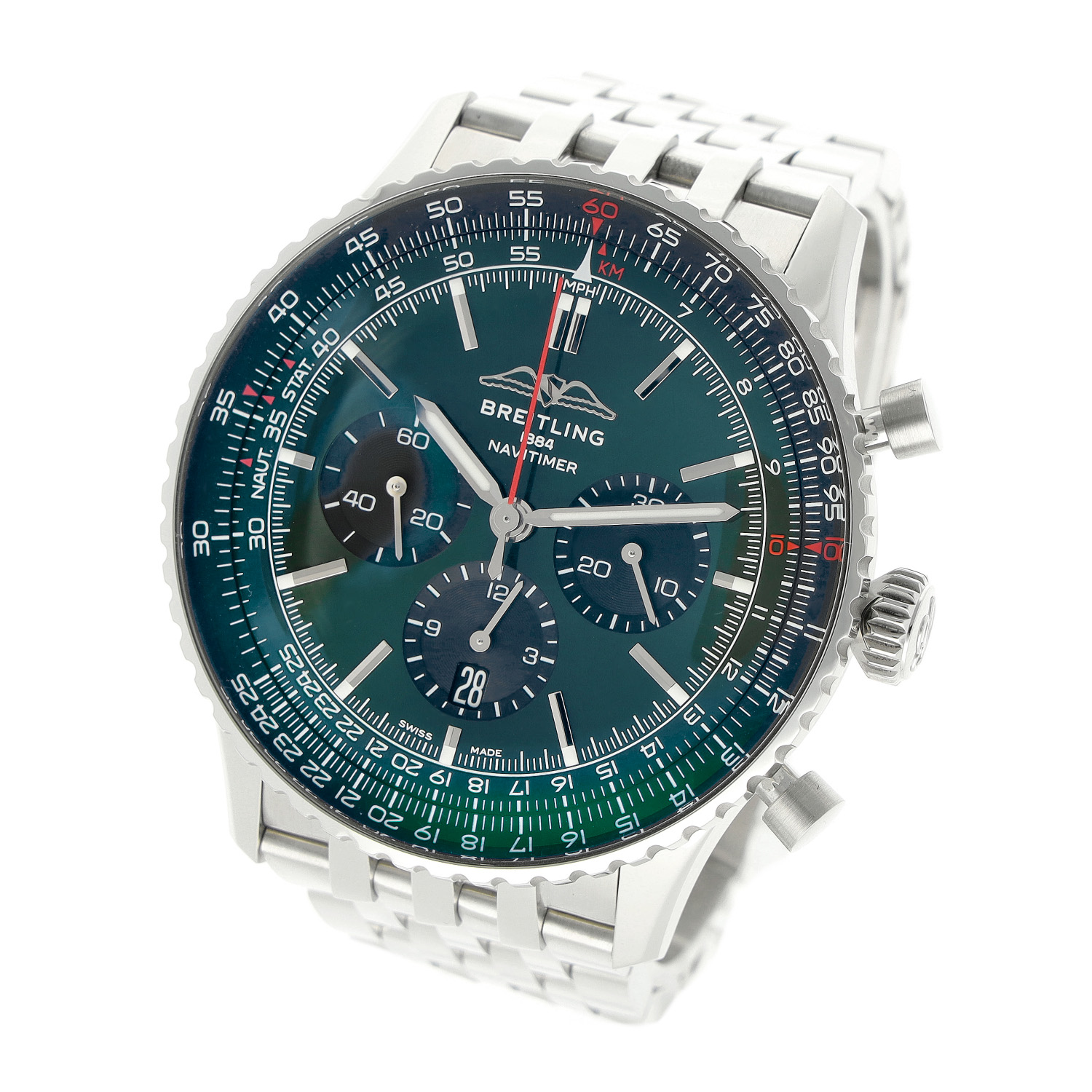 Navitimer 46 Chronograph Ref. AB0137 Edelstahl Green Dial Full Set