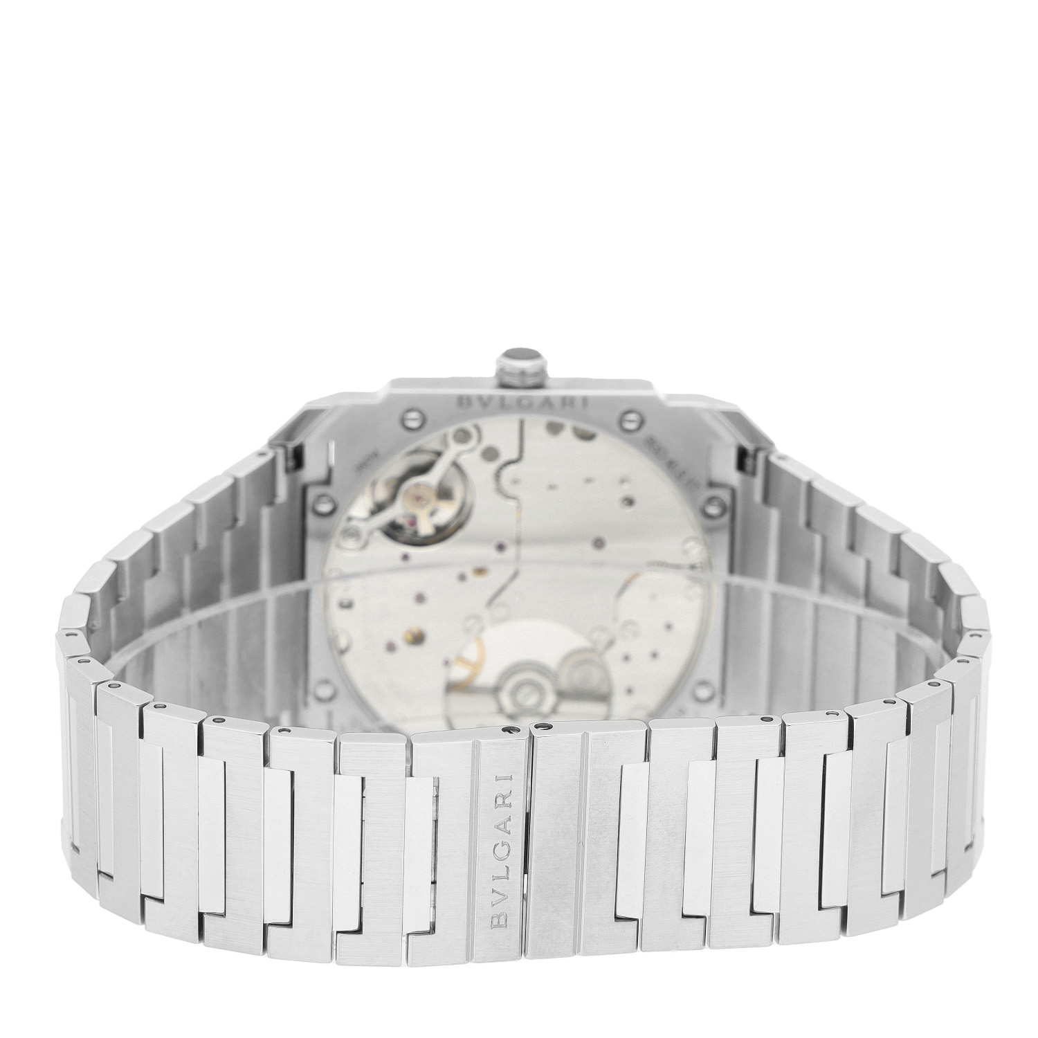 Bvlgari Octo aus dem Jahre 2022 mit einem 40mm Gehäuse in Edelstahl und Doppelfaltschließe. Die Herren Bvlgari Uhr befindet sich in einem ungetragenem Zustand.