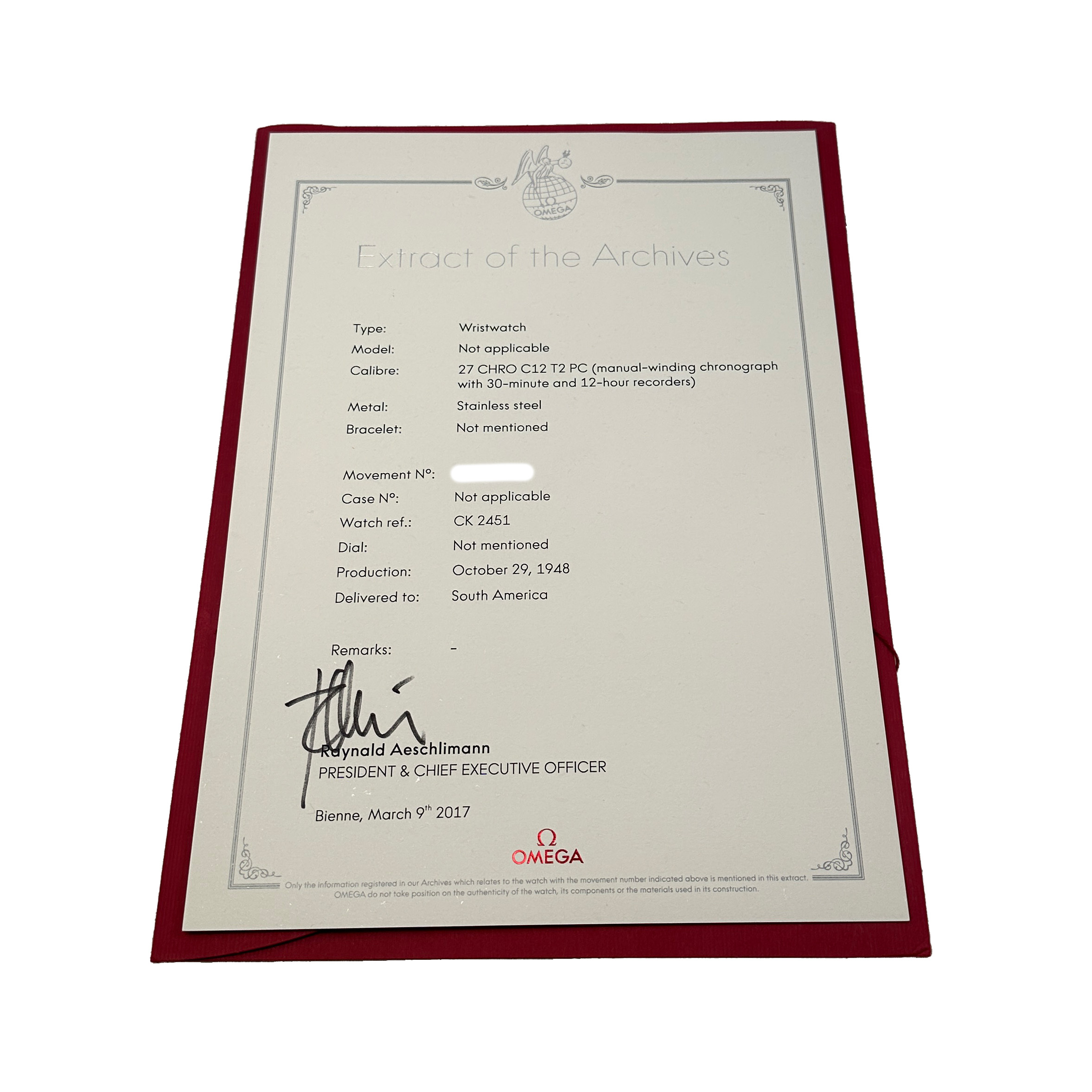 Omega Vintage Ref. CK 2451 Edelstahl 1948 Extract Of The Archives