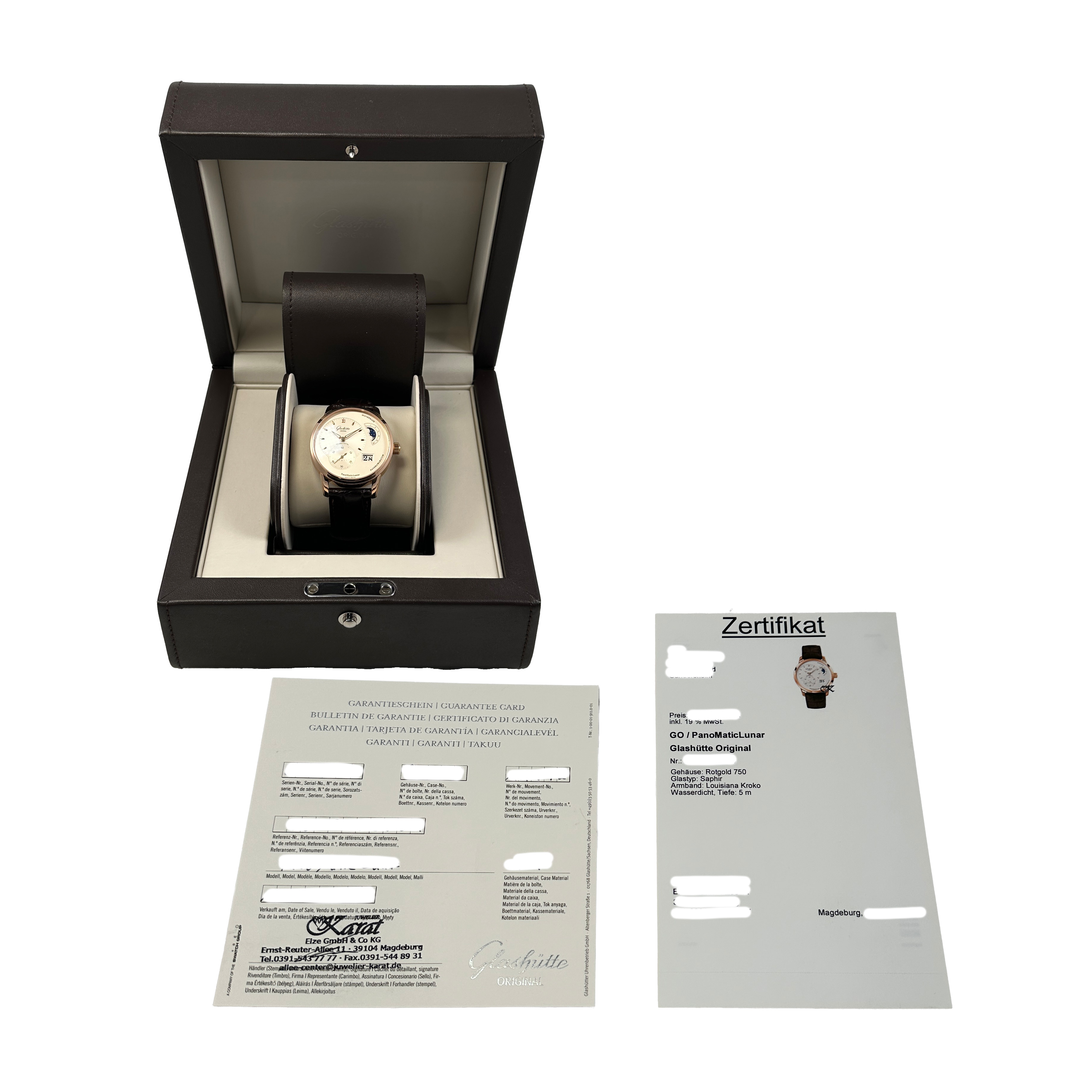 Entdecken Sie ähnliche Modelle wie die Glashütte Original PanomaticLunar 40 mm Ref. 1-90-02-25-05-05 18K Rosegold Full Set und finden Sie Ihr passendes Modell.