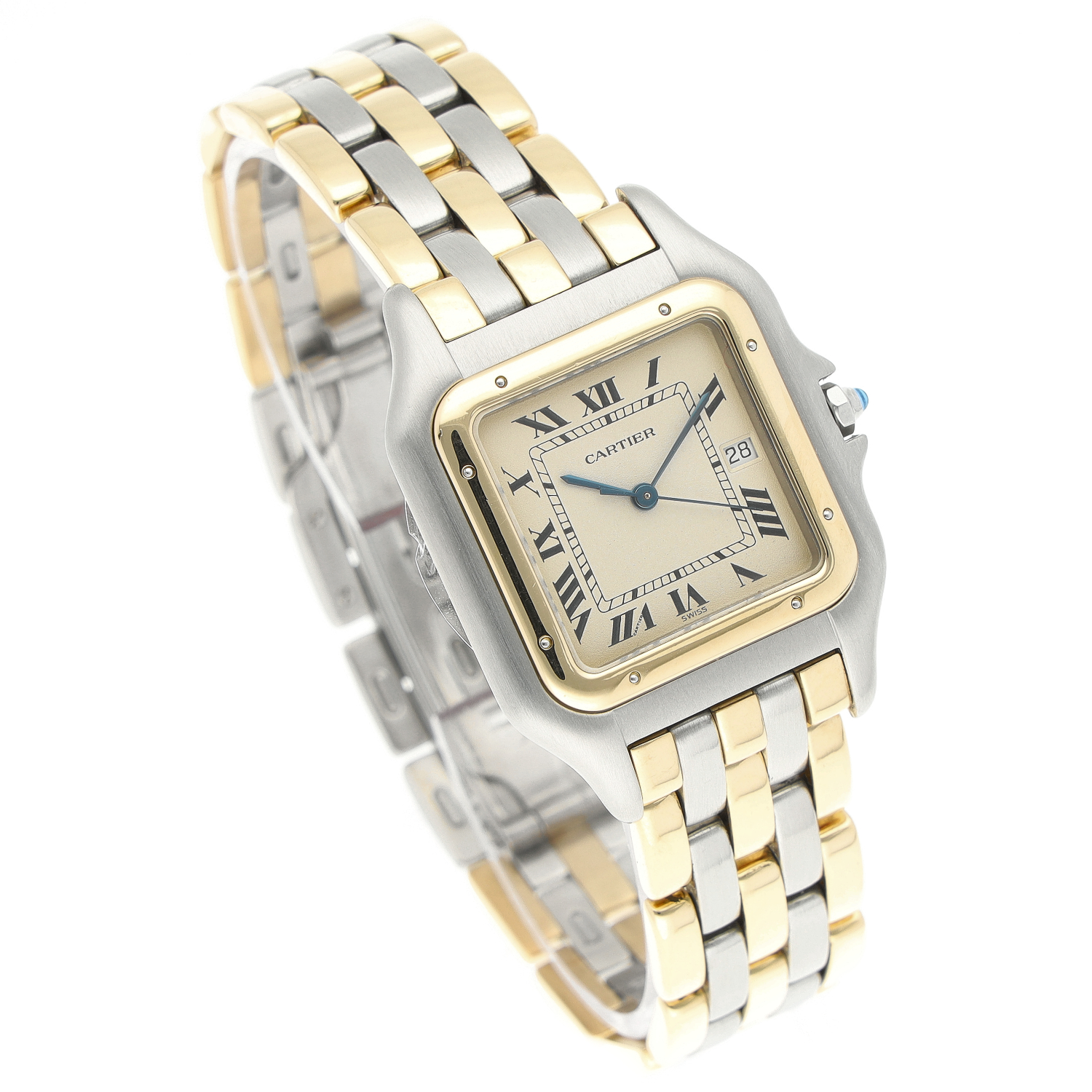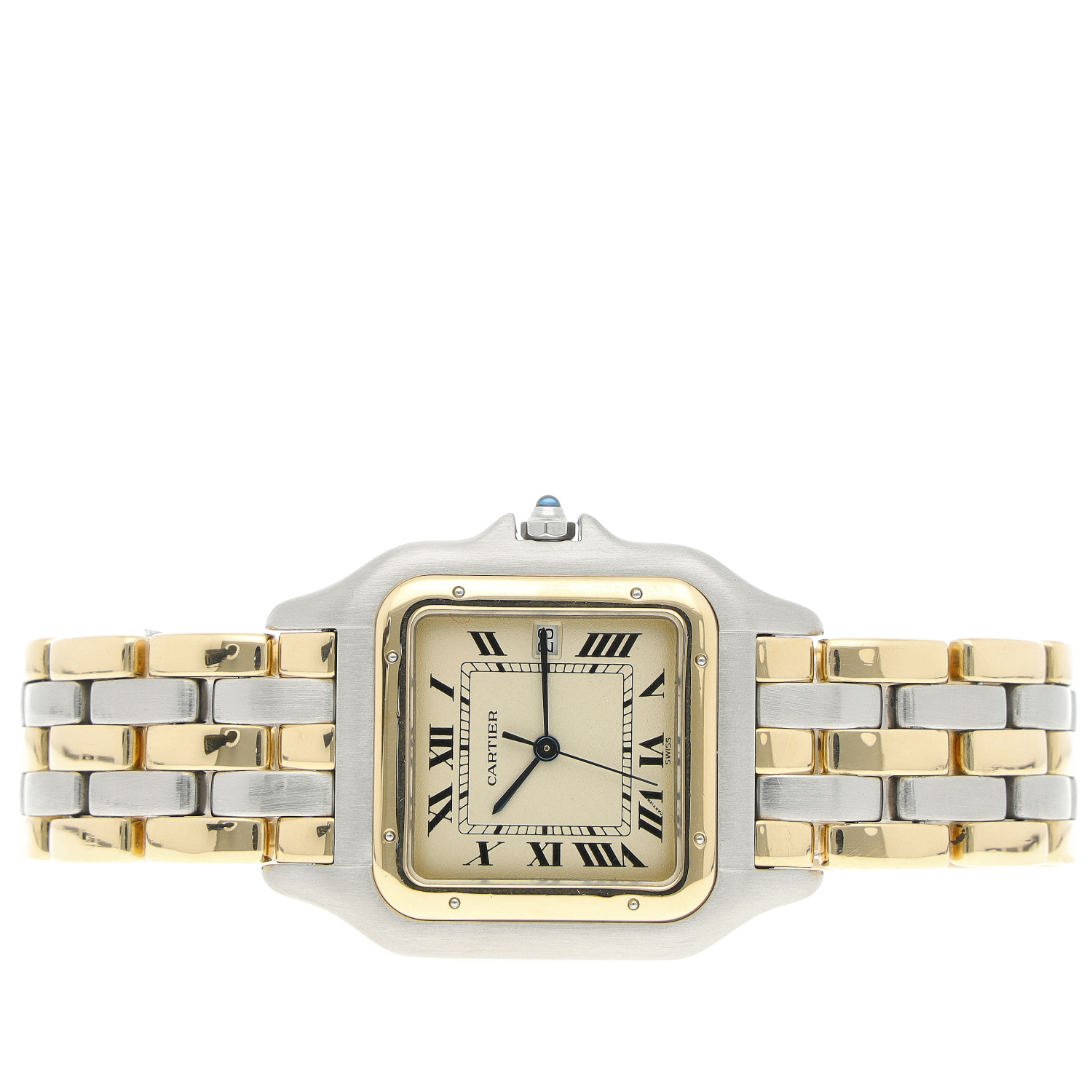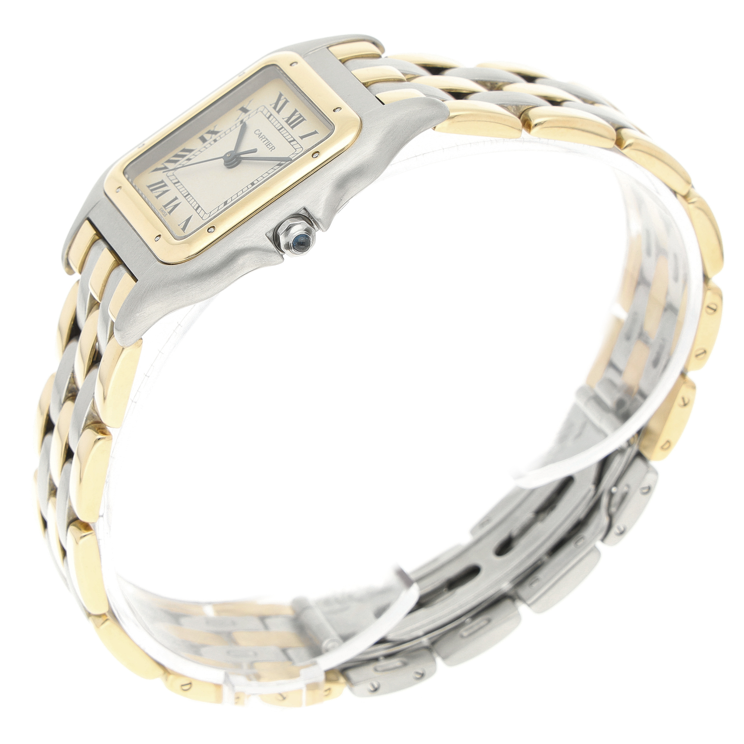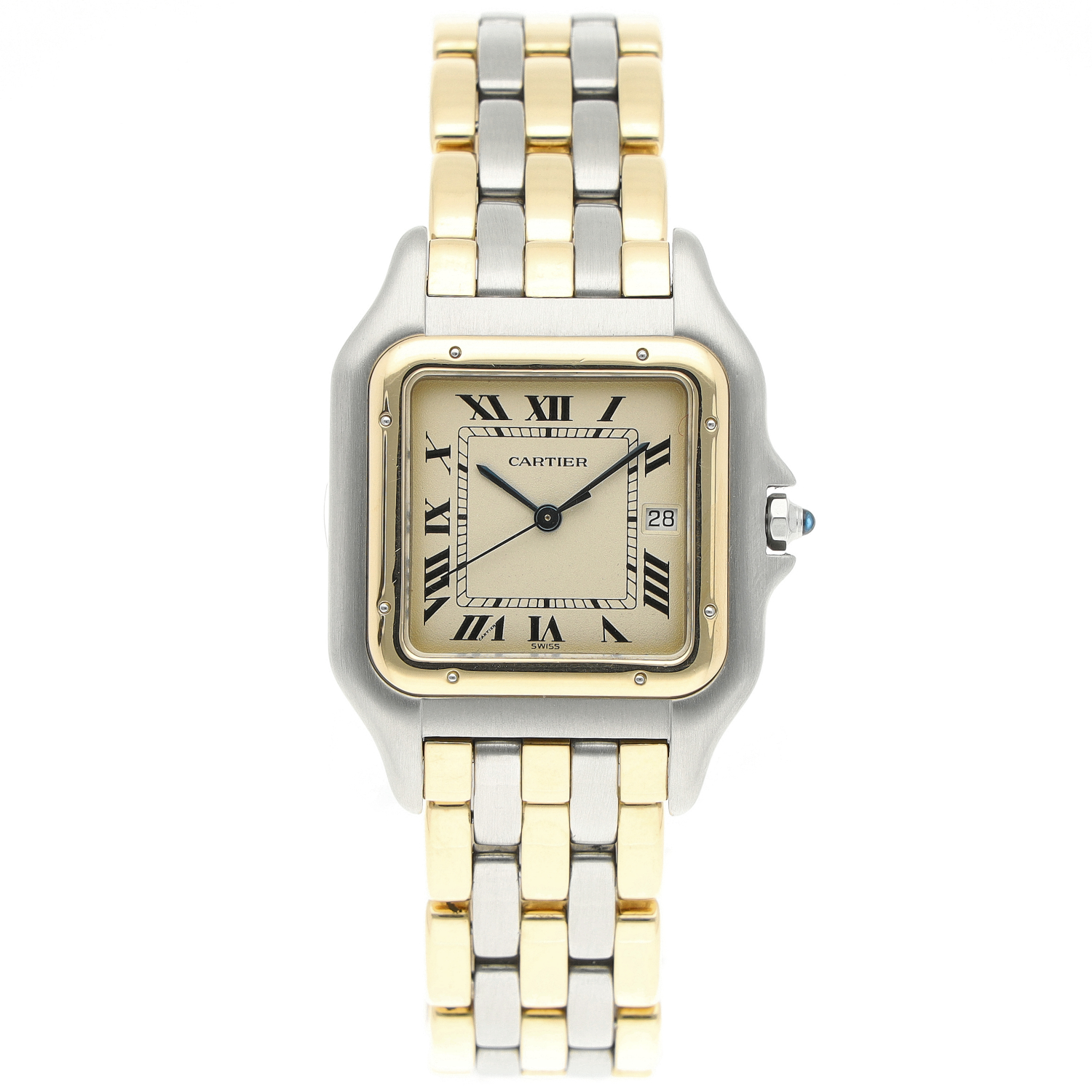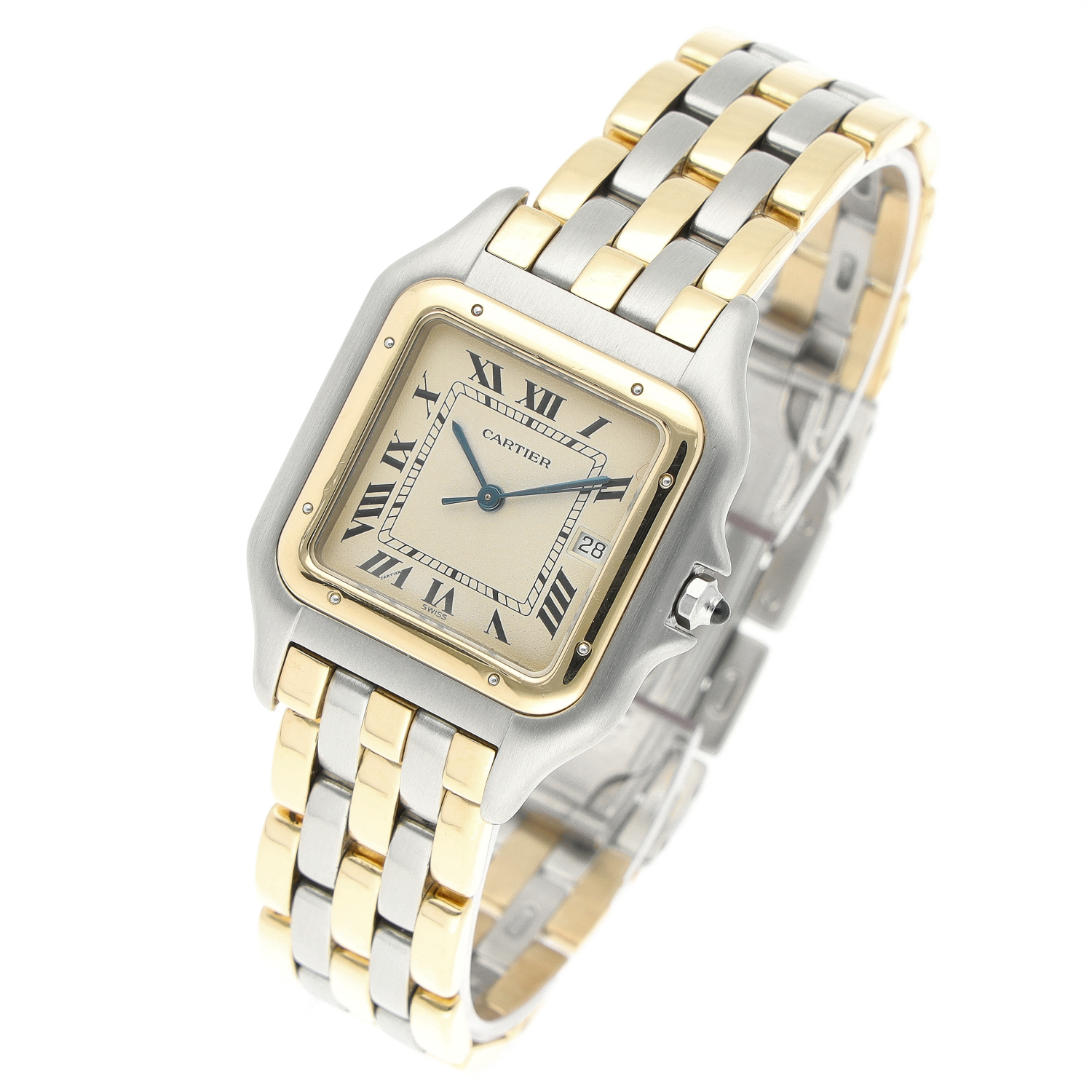 Cartier Panthere aus dem Jahre 1990 mit einem 29 x 40mm Gehäuse in Gold/Stahl und Faltschließe. Die Damen Cartier Uhr befindet sich in einem sehr guten Zustand.