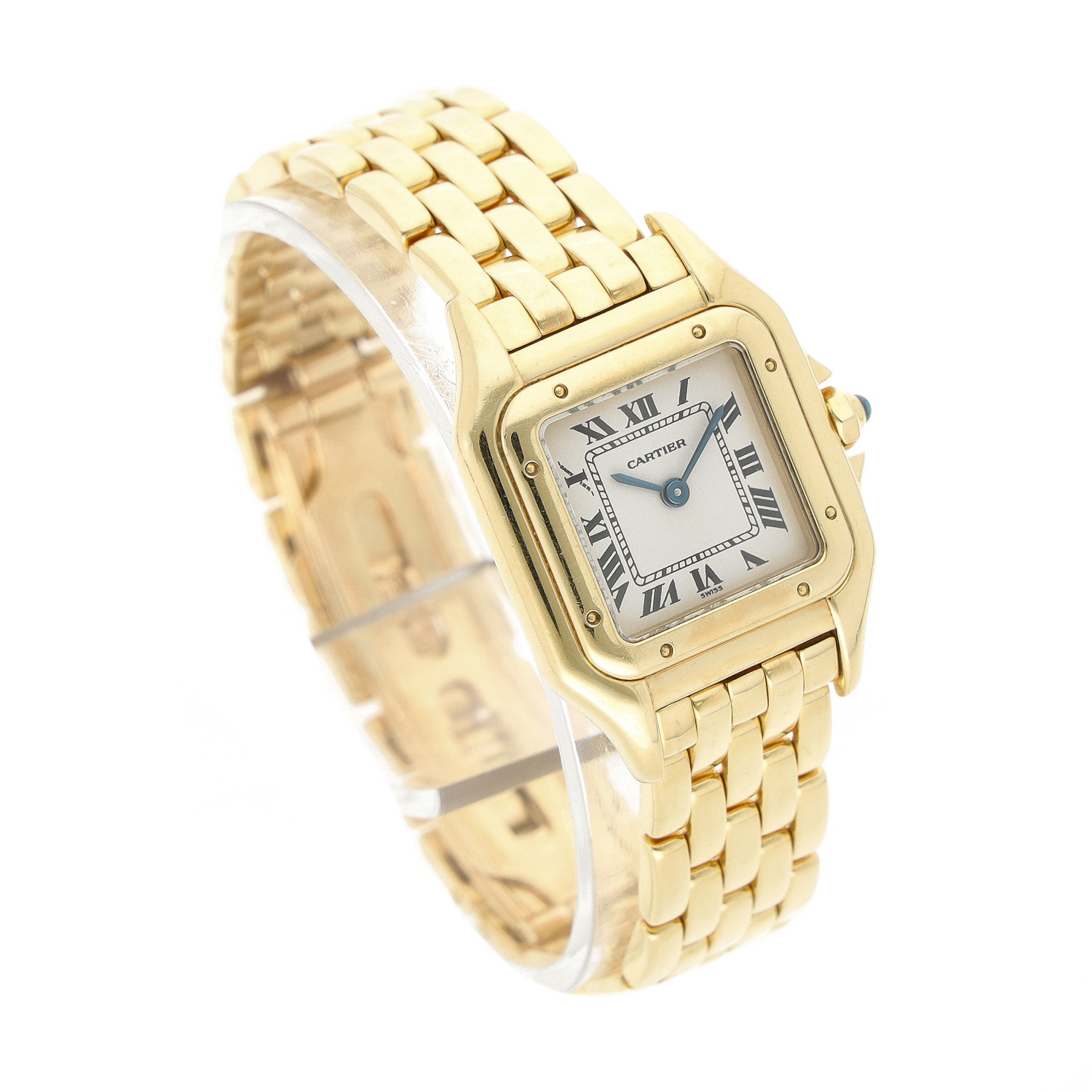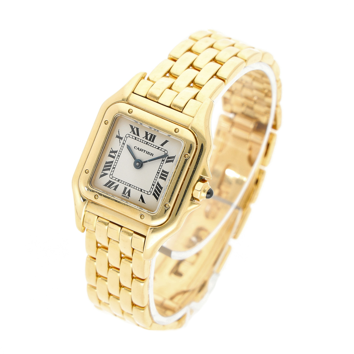 Cartier Panthere aus dem Jahre 1996 mit einem 22x30mm Gehäuse in Gelbgold und Doppelfaltschließe. Die Damen Cartier Uhr befindet sich in einem gutem Zustand.