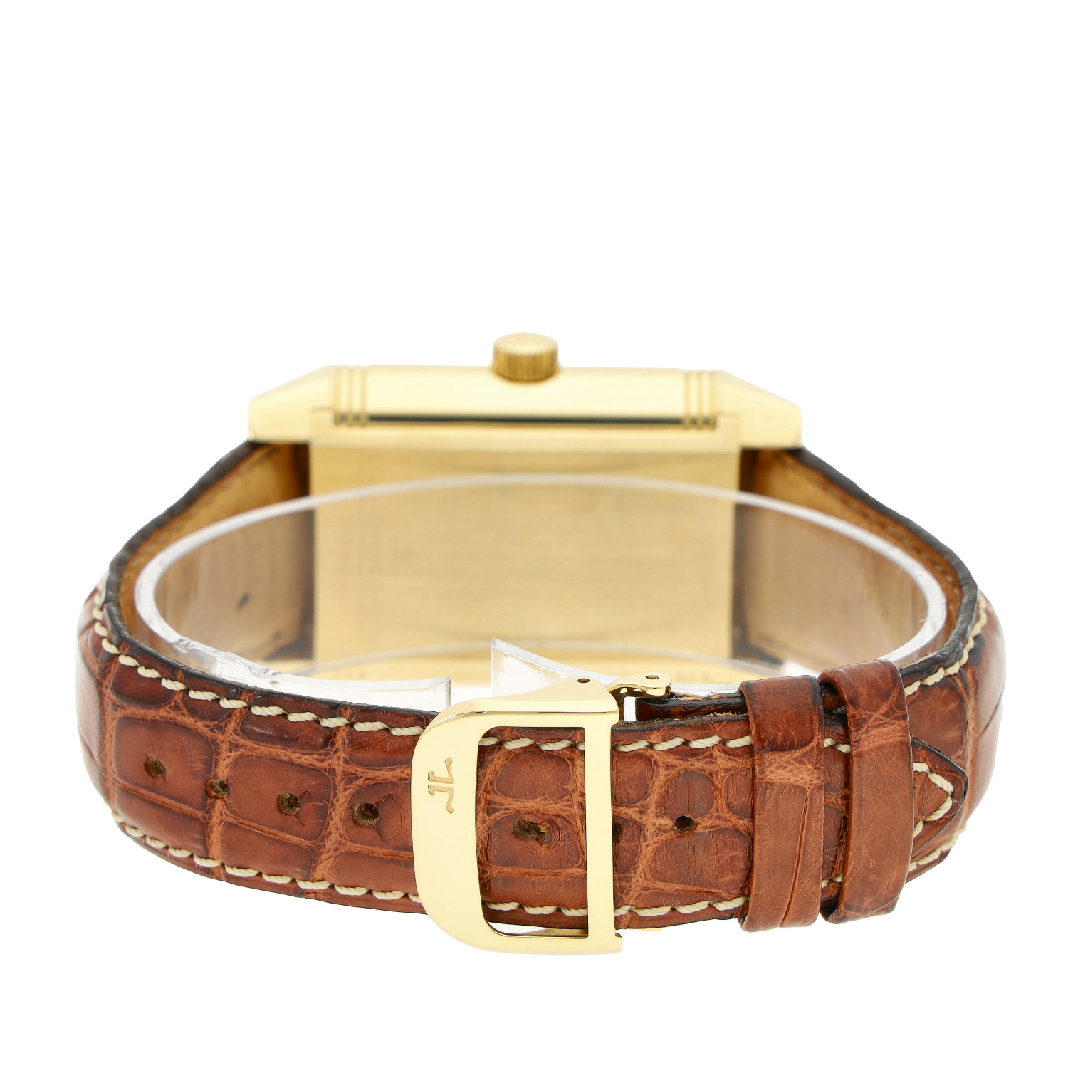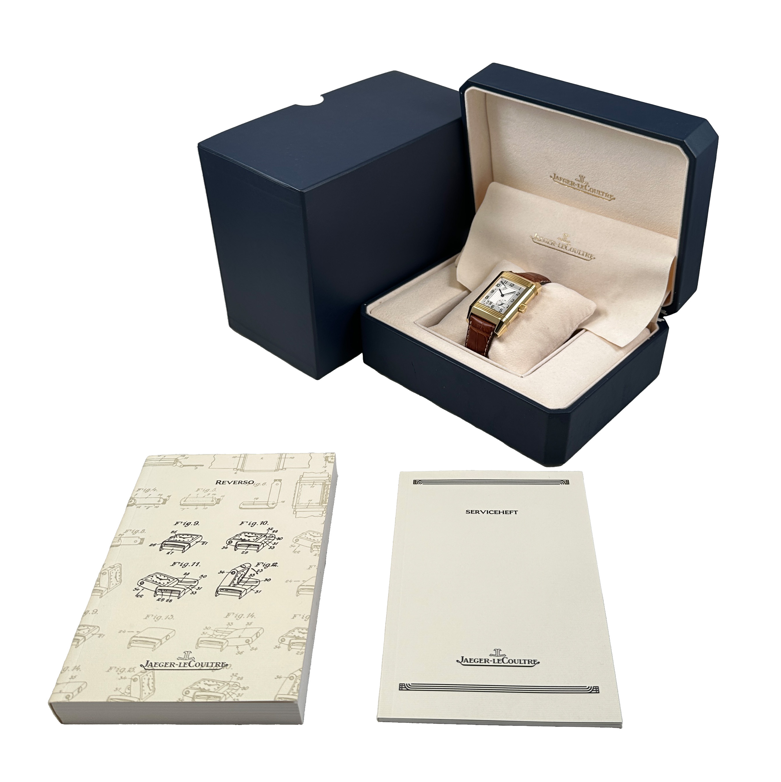 Jaeger LeCoultre Reverso aus dem Jahre ca. 2005 mit einem 46 x 29mm Gehäuse in Gelbgold und Faltschließe. Die Herren Jaeger LeCoultre Uhr befindet sich in einem sehr guten Zustand.
